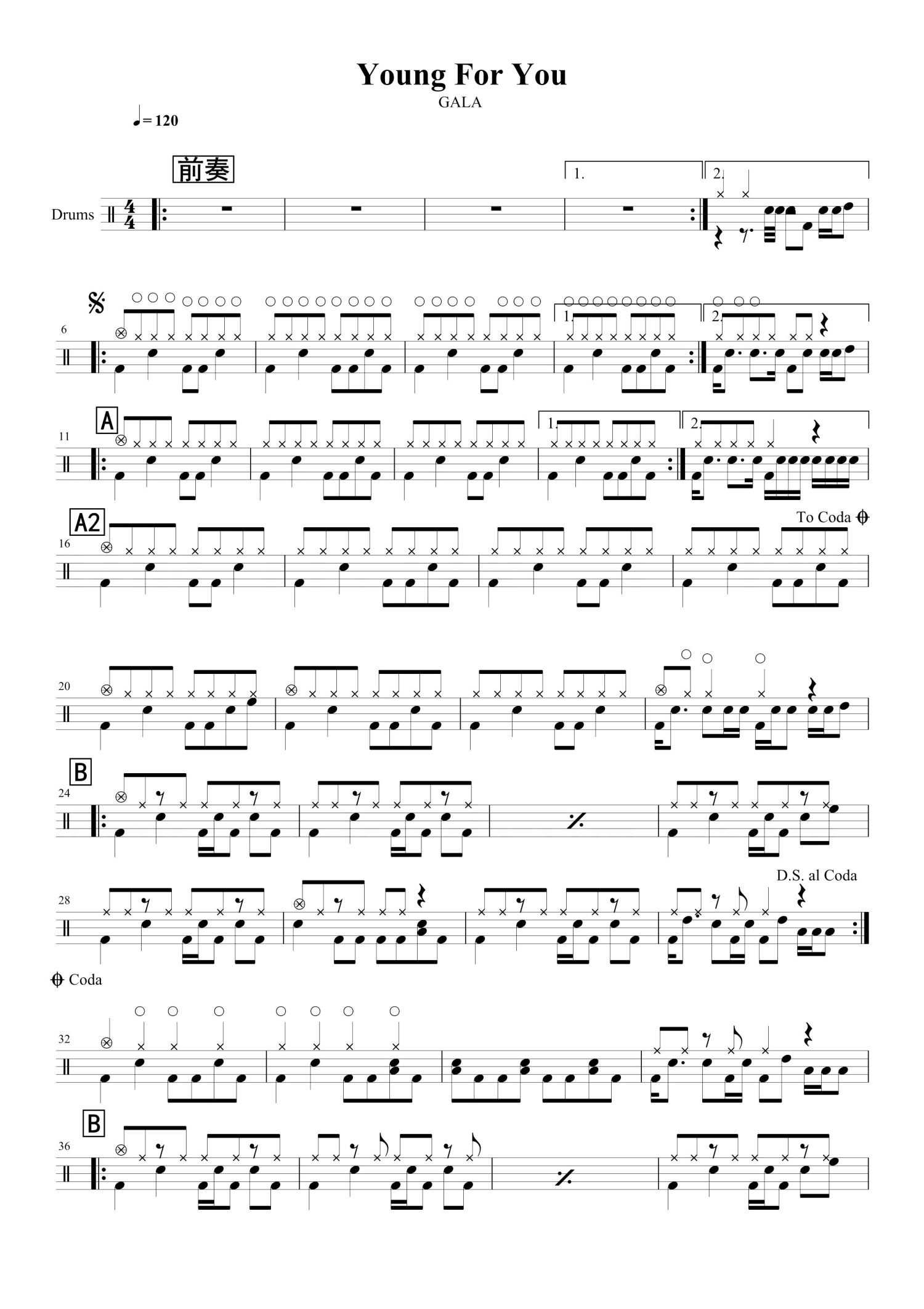 • Young For You鼓谱 - gala - 架子鼓谱第1张