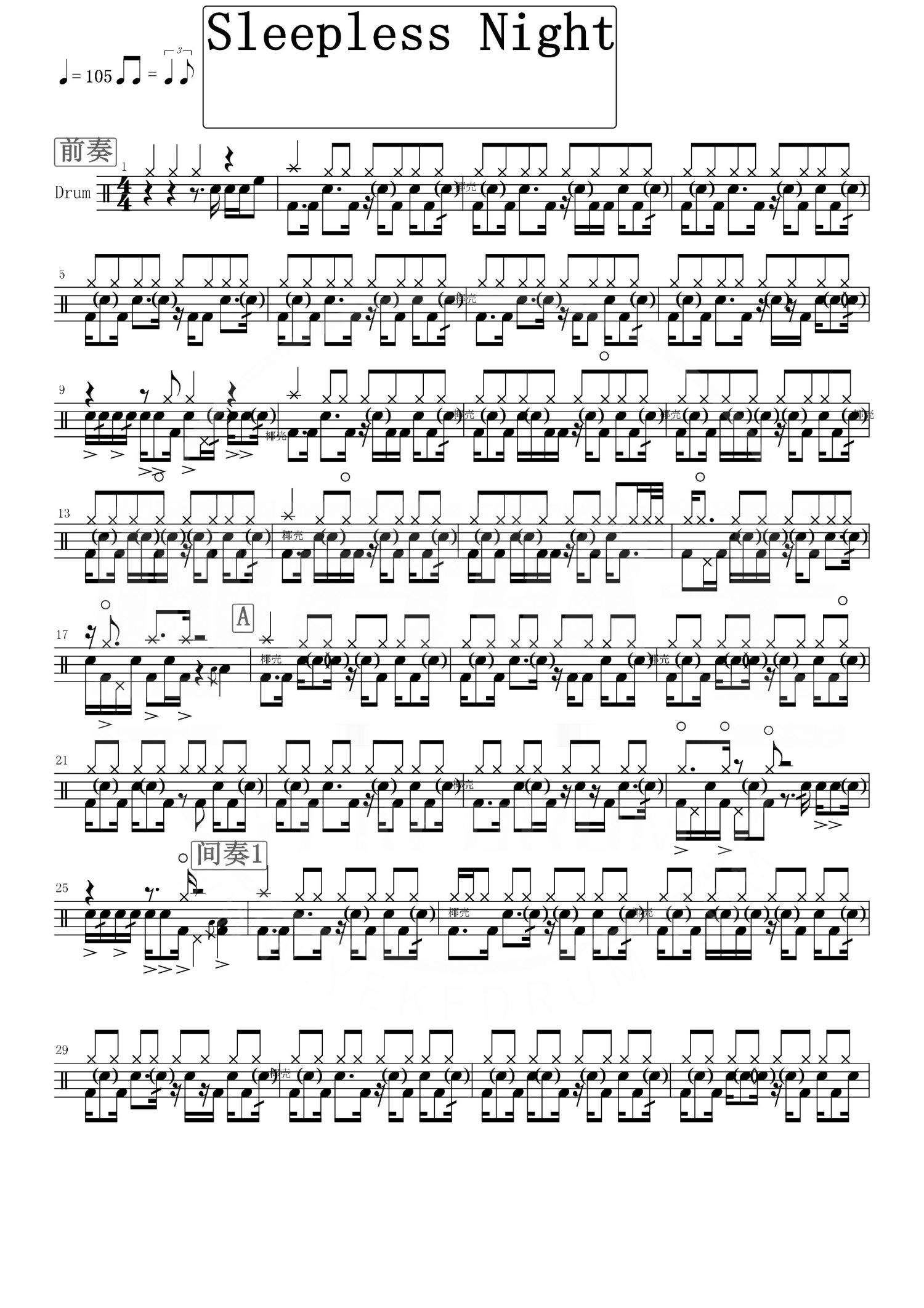 • Sleepless Night不眠夜)鼓谱 - HOWHY号外乐团 - 架子鼓谱第1张