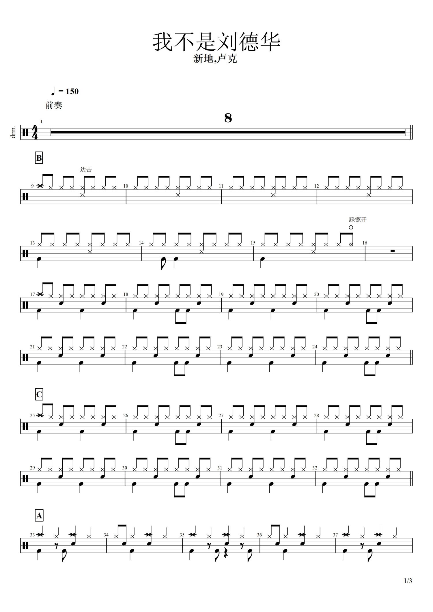 • 我不是刘德华鼓谱 - 新地/卢克 - 架子鼓谱第1张
