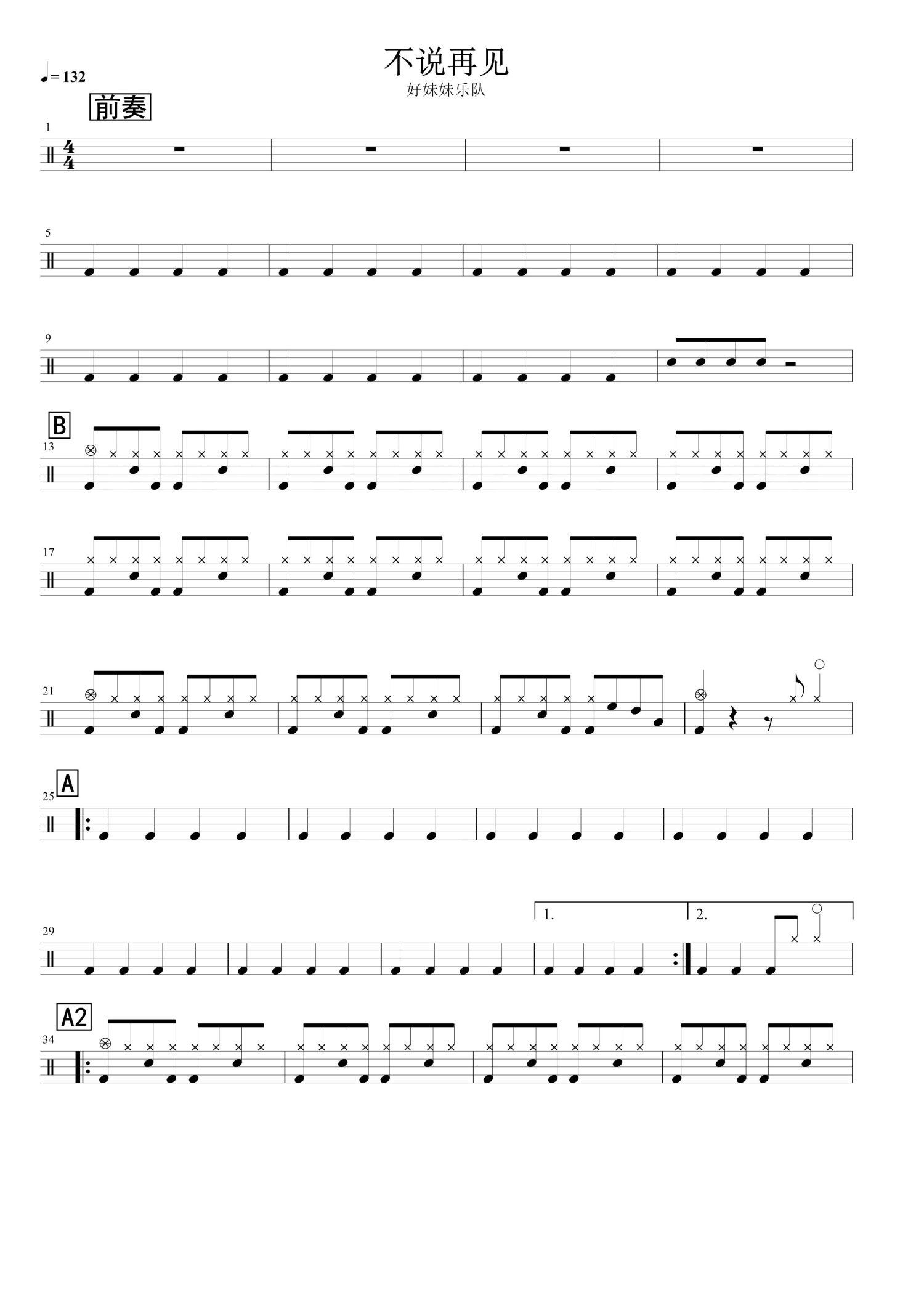 • 不说再见鼓谱 - 好妹妹乐队 - 架子鼓谱第1张