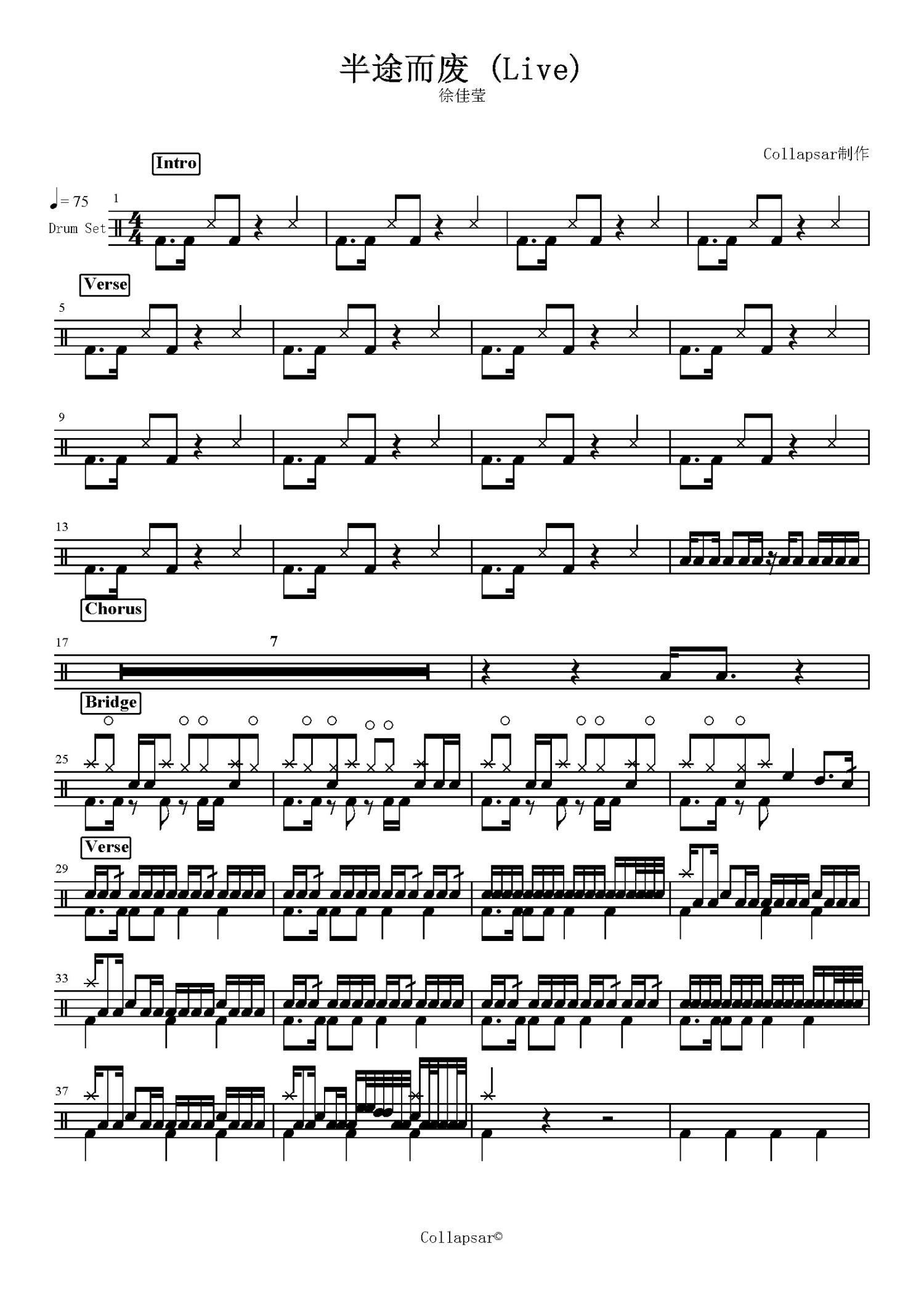 • 半途而废鼓谱 - 徐佳莹 - 架子鼓谱第1张