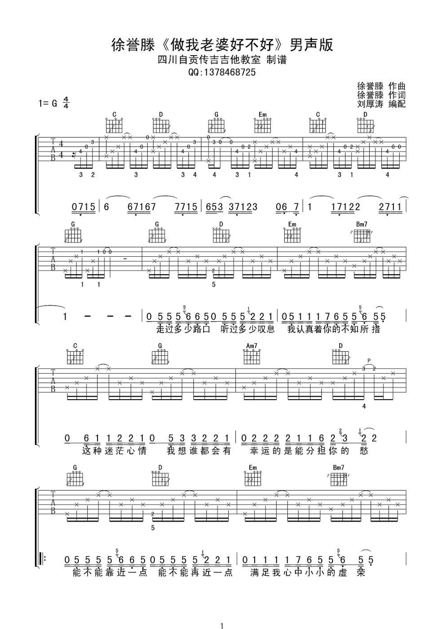 曲谱介绍: 徐誉滕《做我老婆好不好》吉他谱_G调吉他弹唱谱_男声版