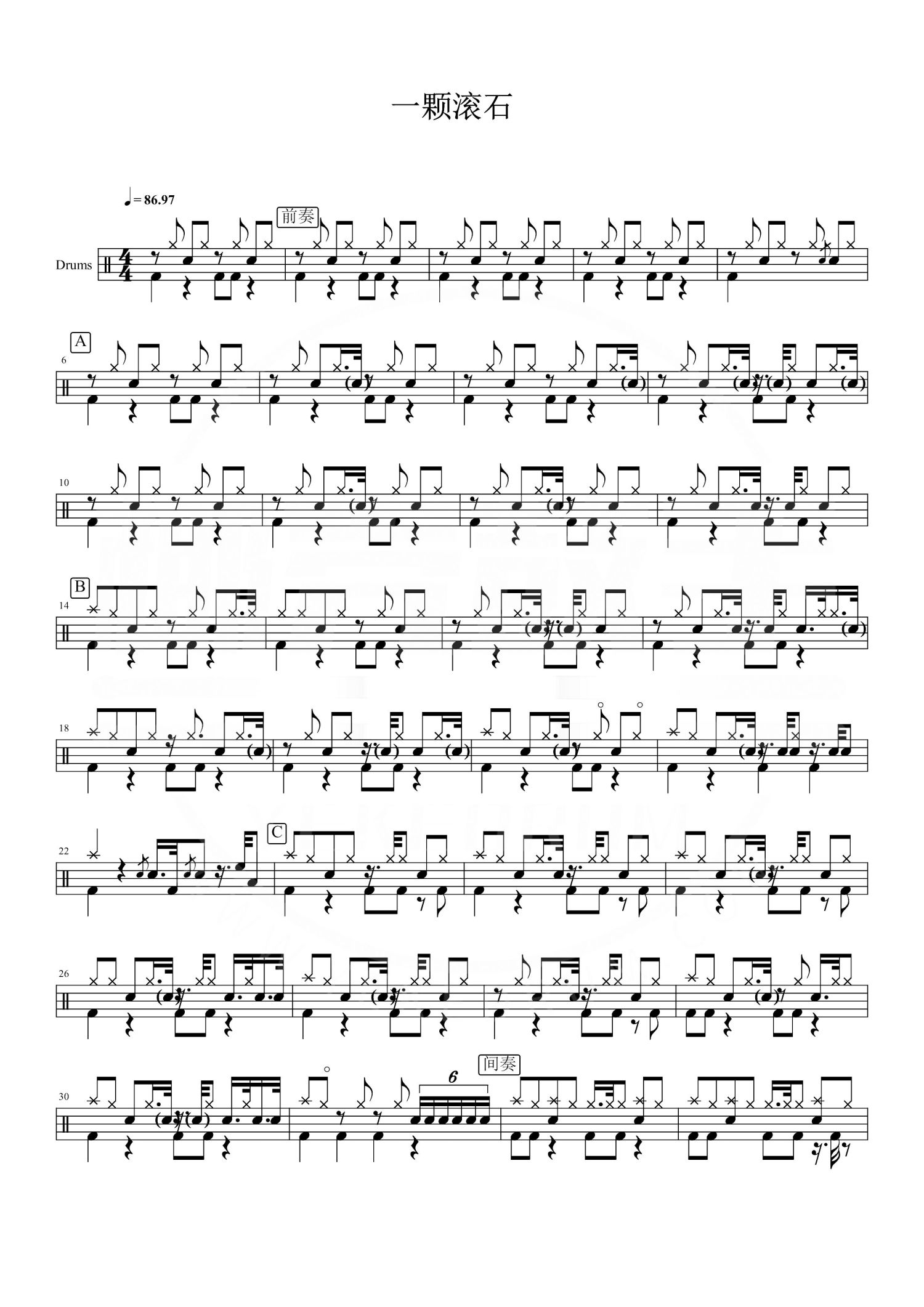 • 一颗滚石鼓谱 - 赵传 - 架子鼓谱第1张