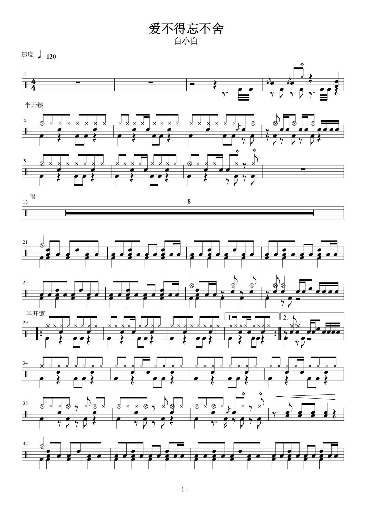 • 爱不得忘不舍鼓谱 - 白小白 - 架子鼓谱第1张