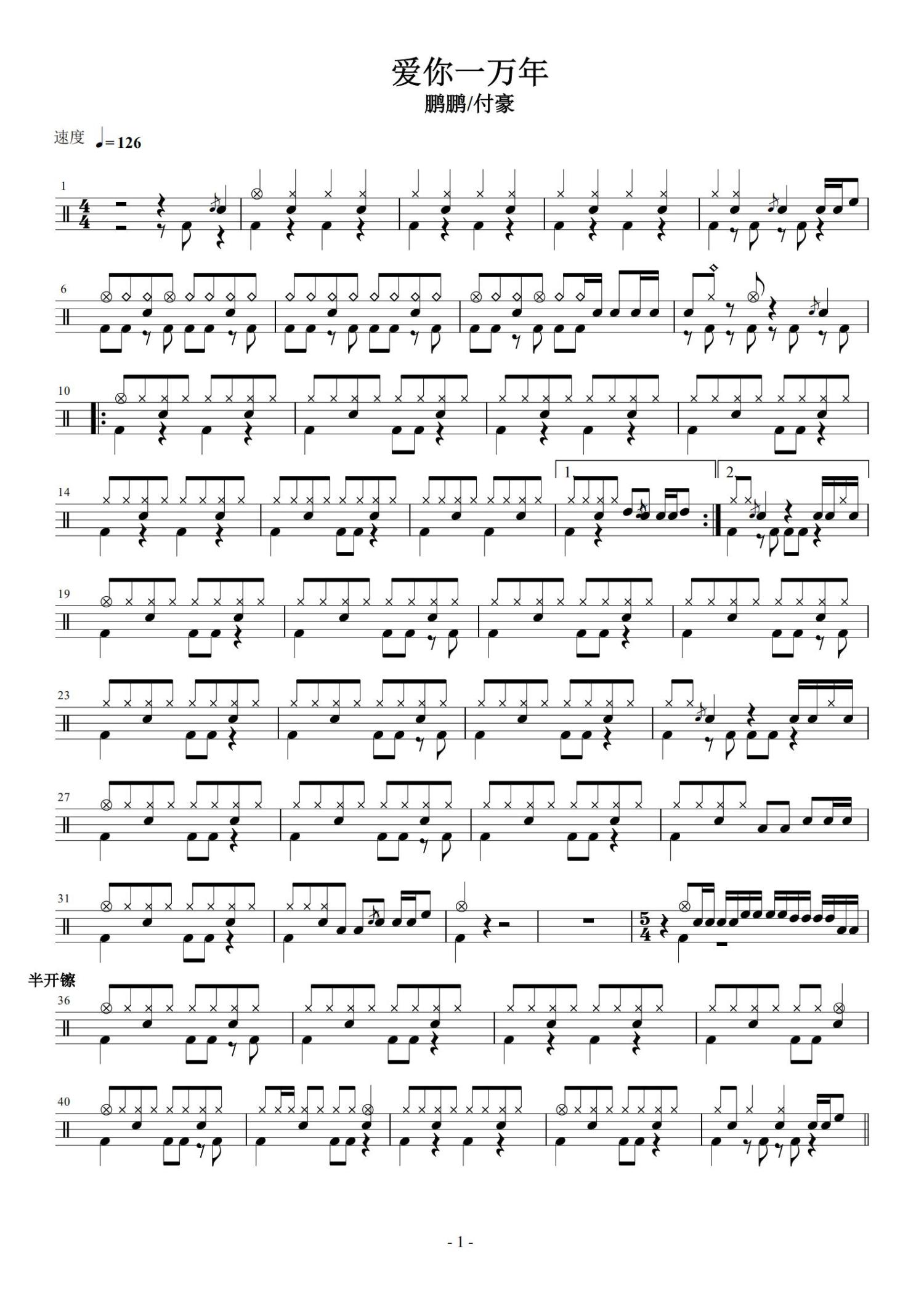 • 爱你一万年鼓谱 - 刘德华 - 架子鼓谱第1张