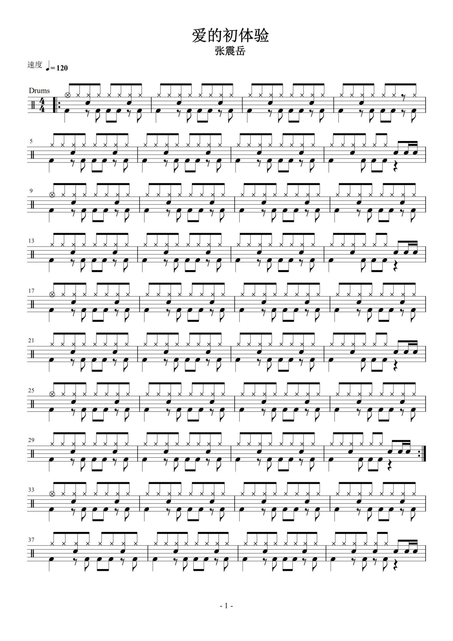• 爱之初体验鼓谱 - 张震岳 - 架子鼓谱第1张