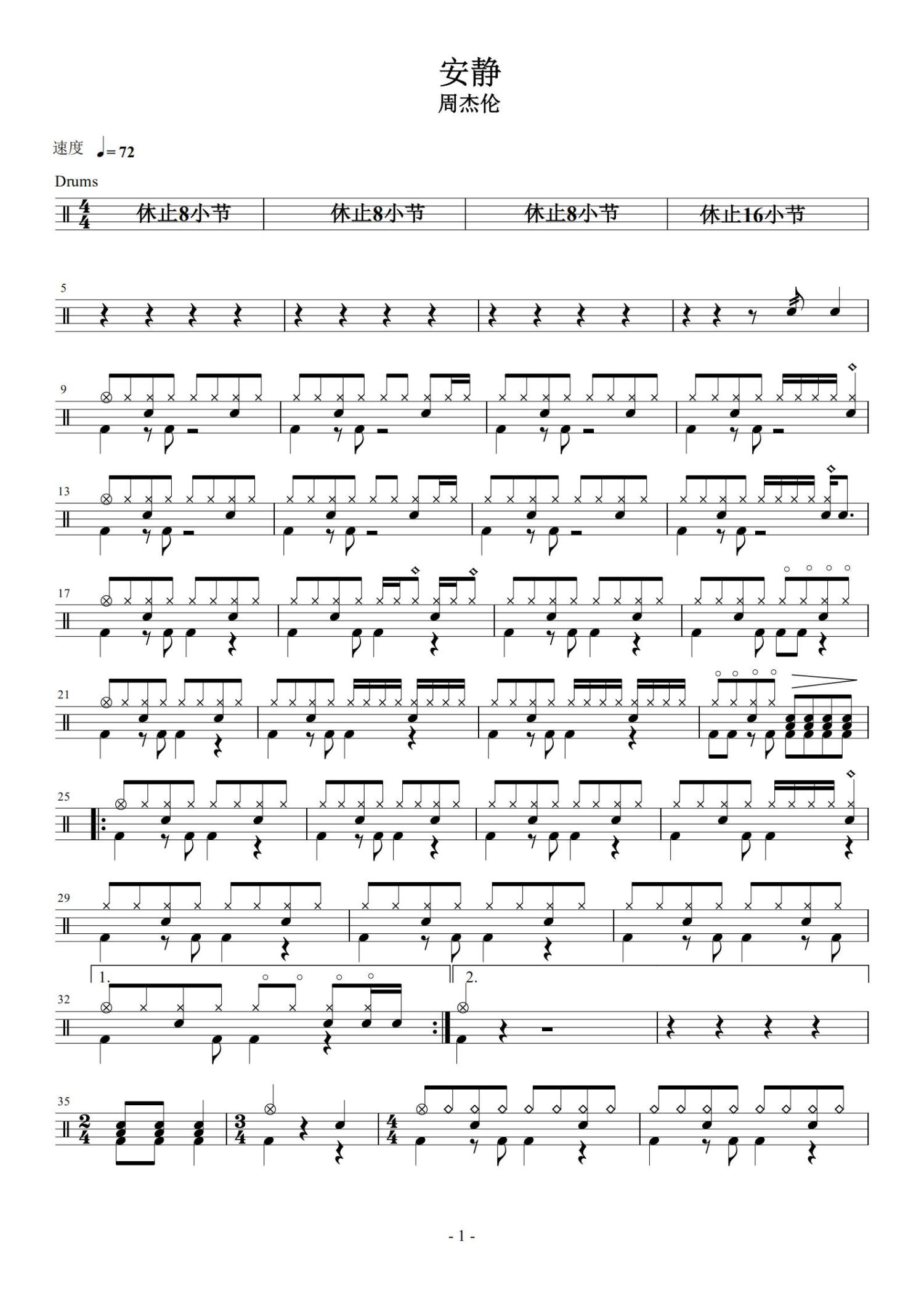 • 安静鼓谱 - 周杰伦 - 架子鼓谱第1张