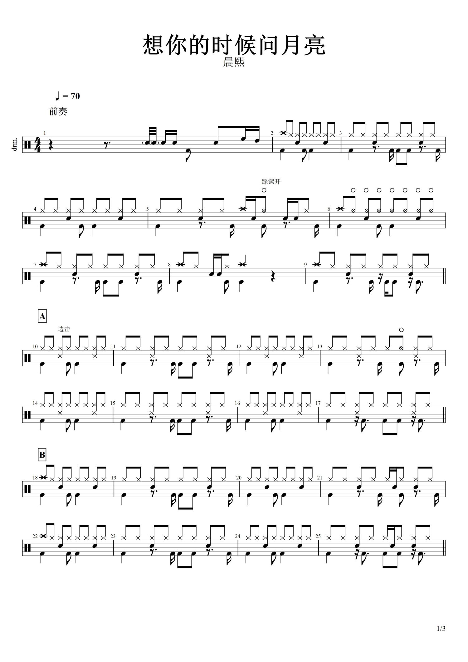 • 想你的时候问月亮鼓谱 - 晨熙 - 架子鼓谱第1张