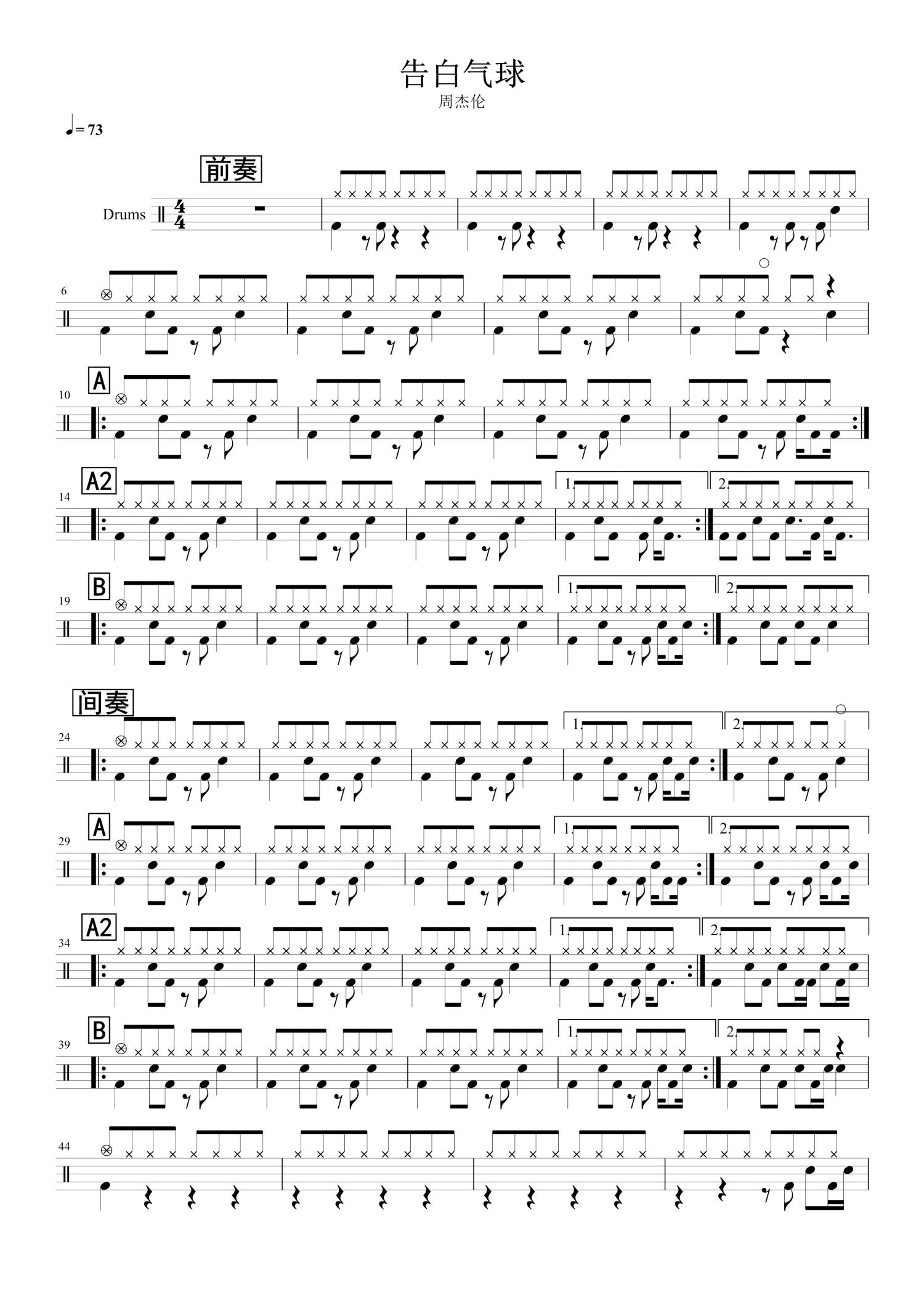 告白气球鼓谱 - 周杰伦 - 架子鼓谱