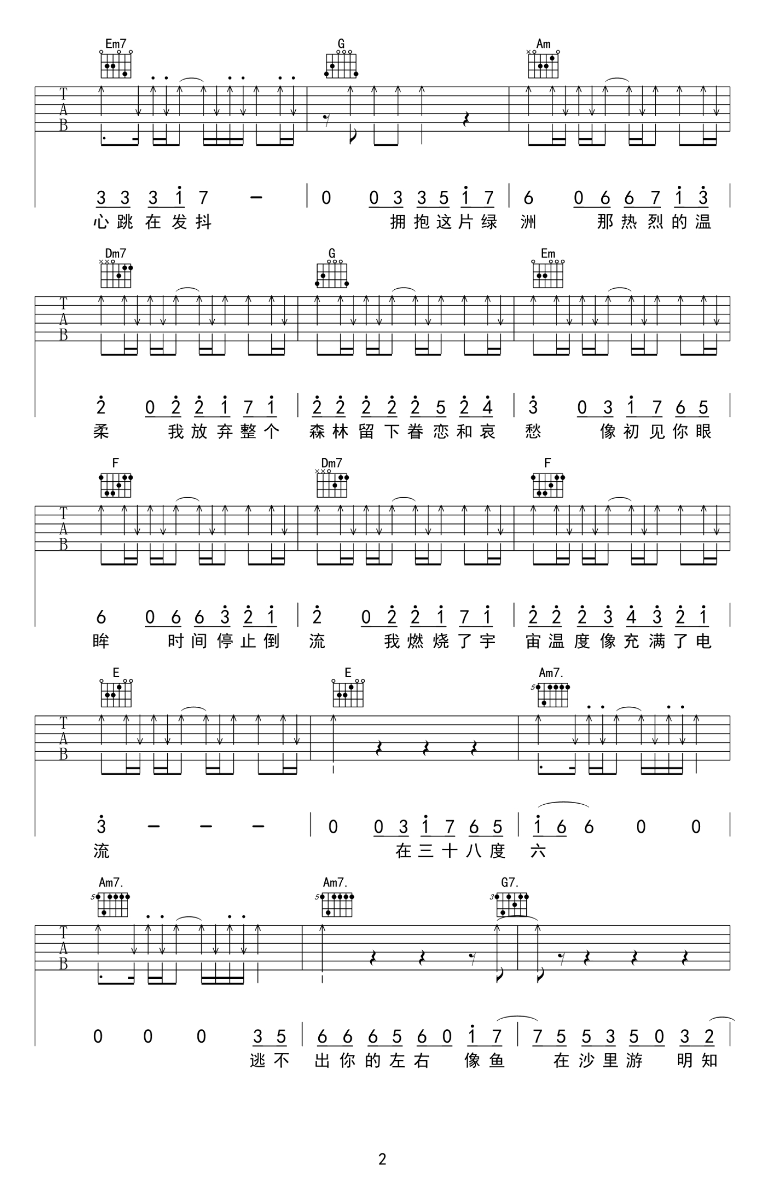 曲谱介绍: 38度6吉他谱三十八度六黑龙高清弹唱六线谱抖音歌曲