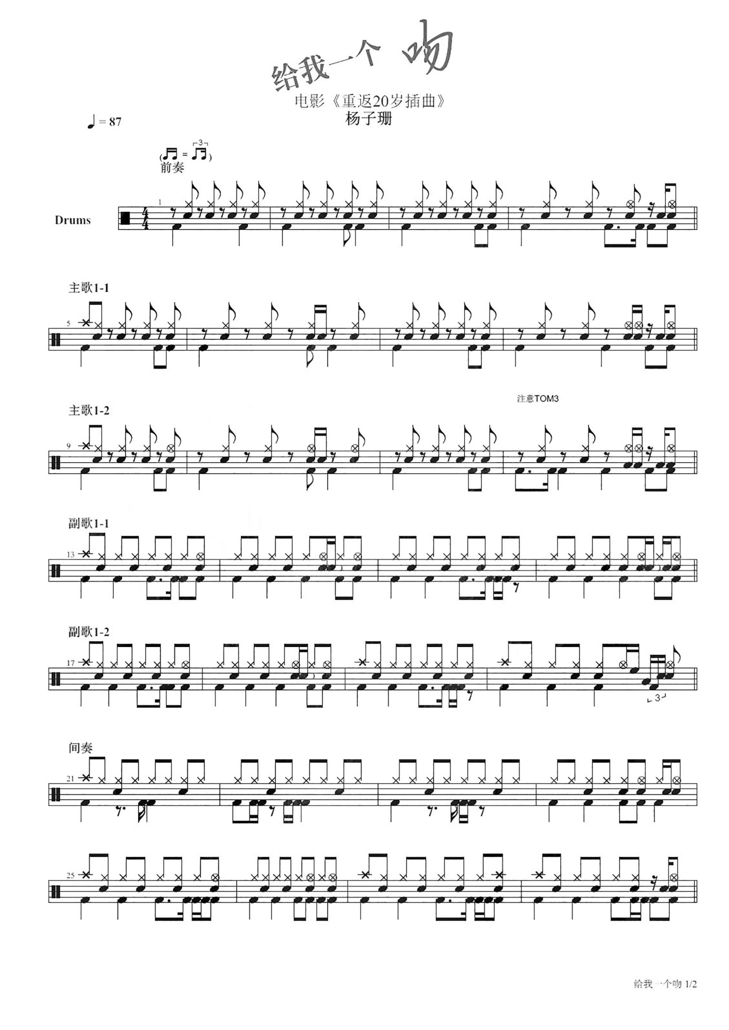 • 给我一个吻鼓谱 - 杨子姗 - 架子鼓谱第1张