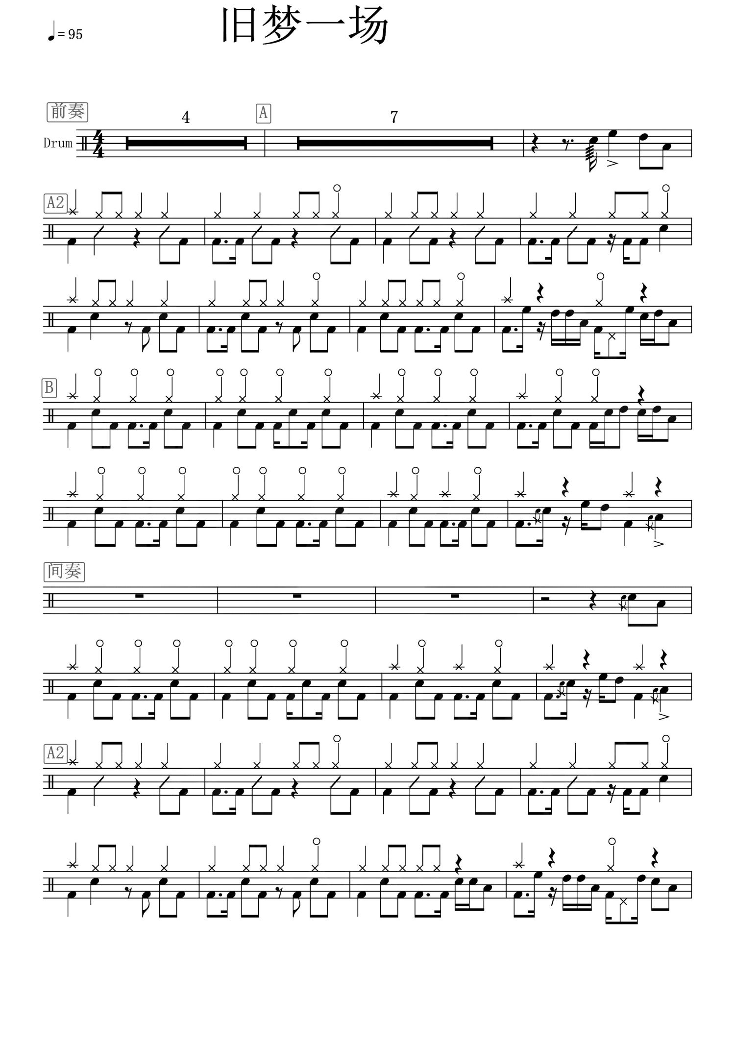 • 旧梦一场鼓谱 - 阿悠悠 - 架子鼓谱第1张