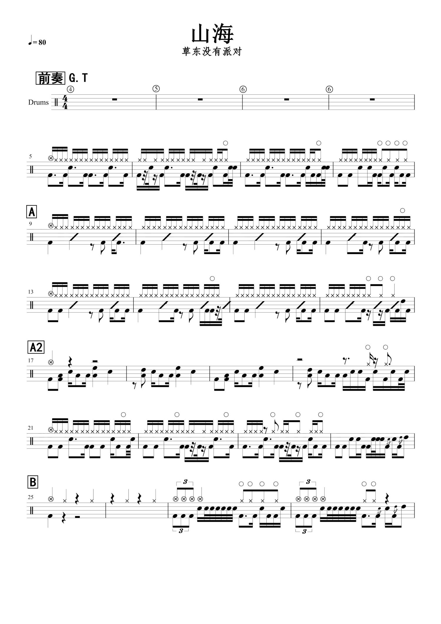 • 山海鼓谱 - 草东没有派对 - 架子鼓谱第1张