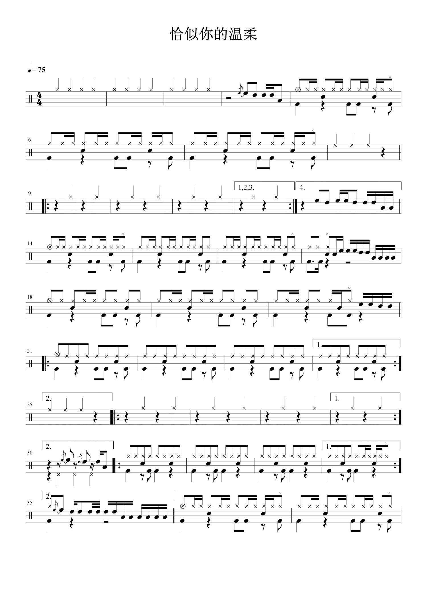 • 恰是你的温柔鼓谱 - 邓丽君 - 架子鼓谱第1张