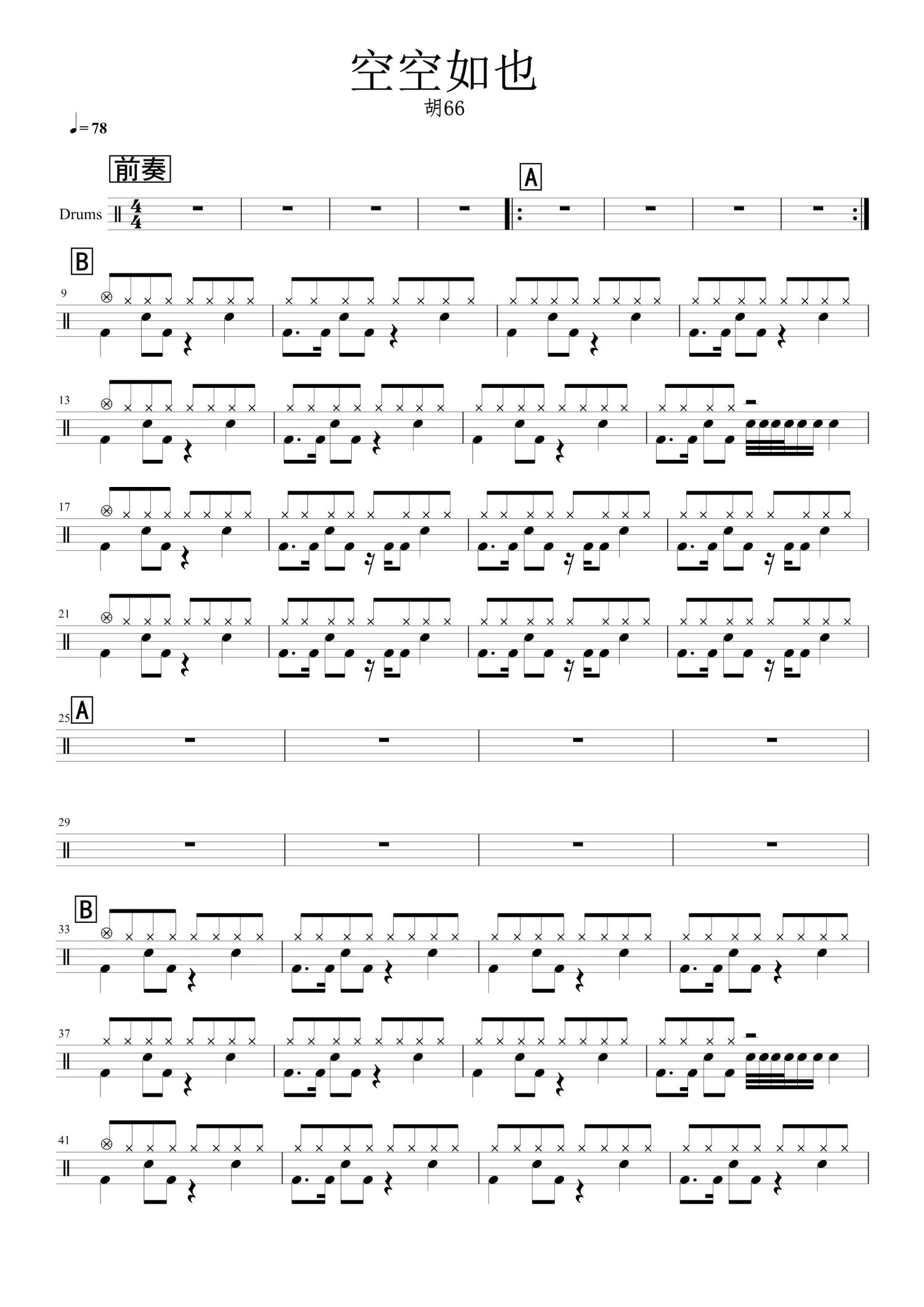 • 空空如也鼓谱 - 胡66 - 架子鼓谱第1张