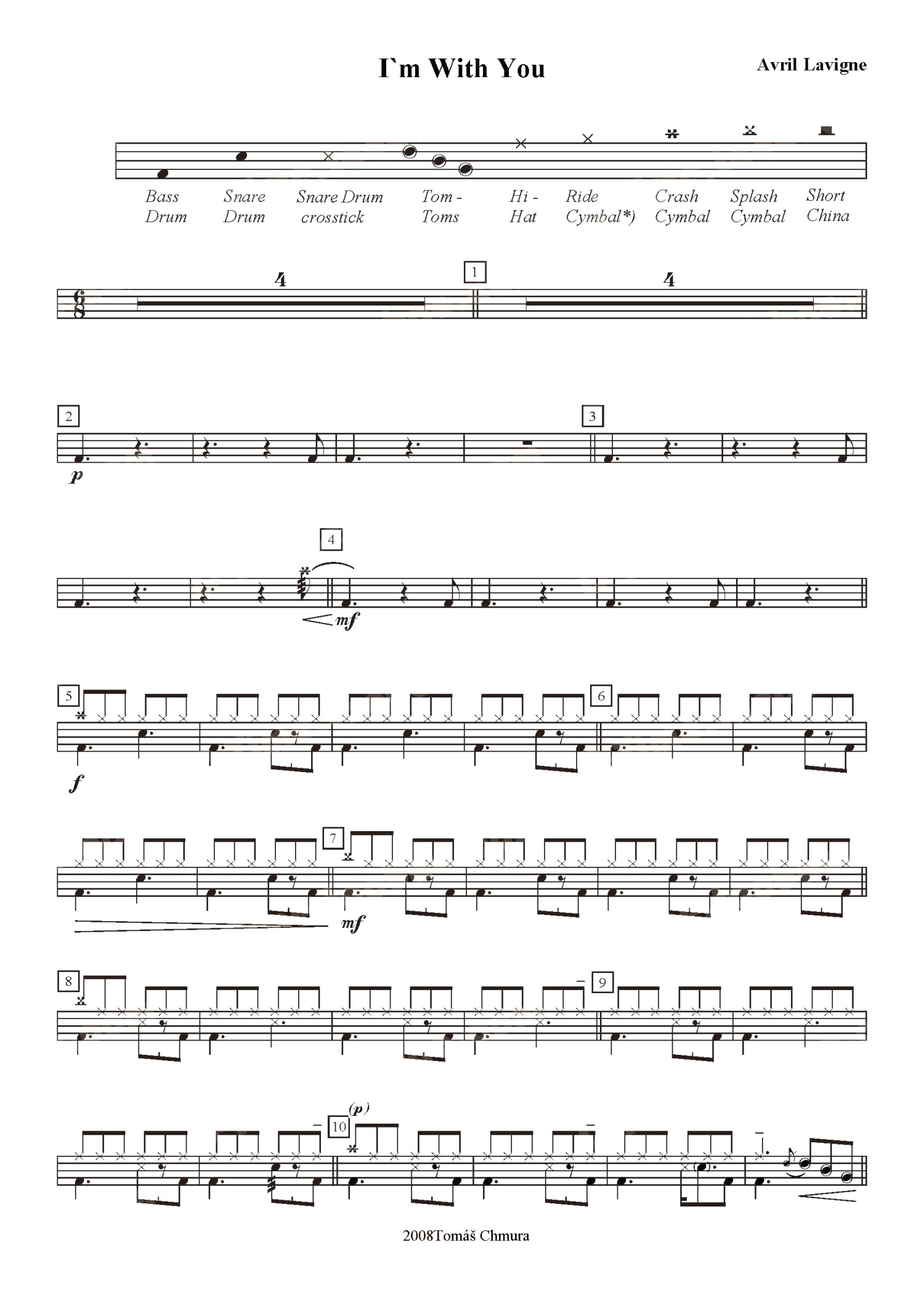 • I'm With You鼓谱 - Avril Lavigne - 架子鼓谱第1张