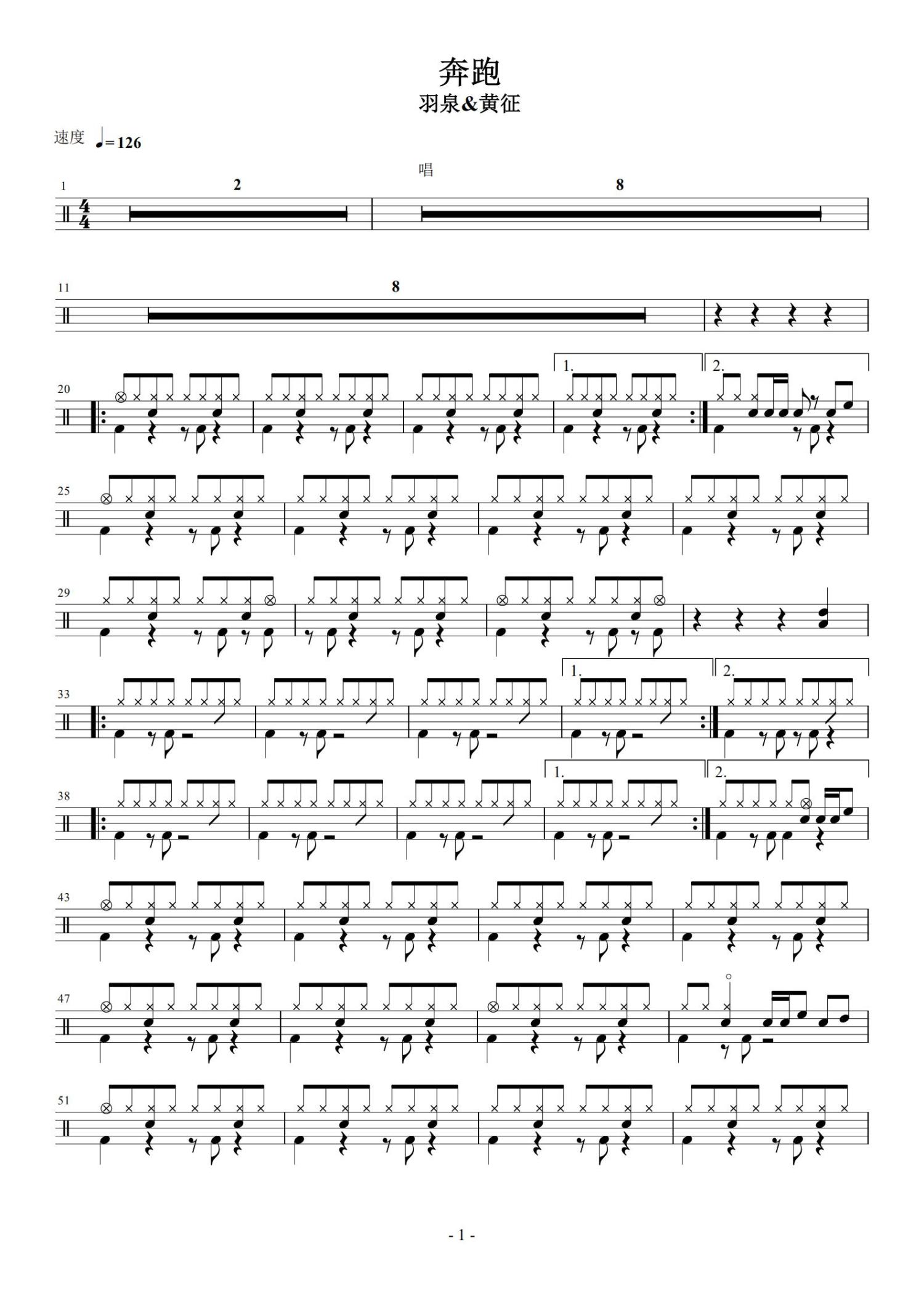 • 奔跑鼓谱 - 羽泉/黄征 - 架子鼓谱第1张