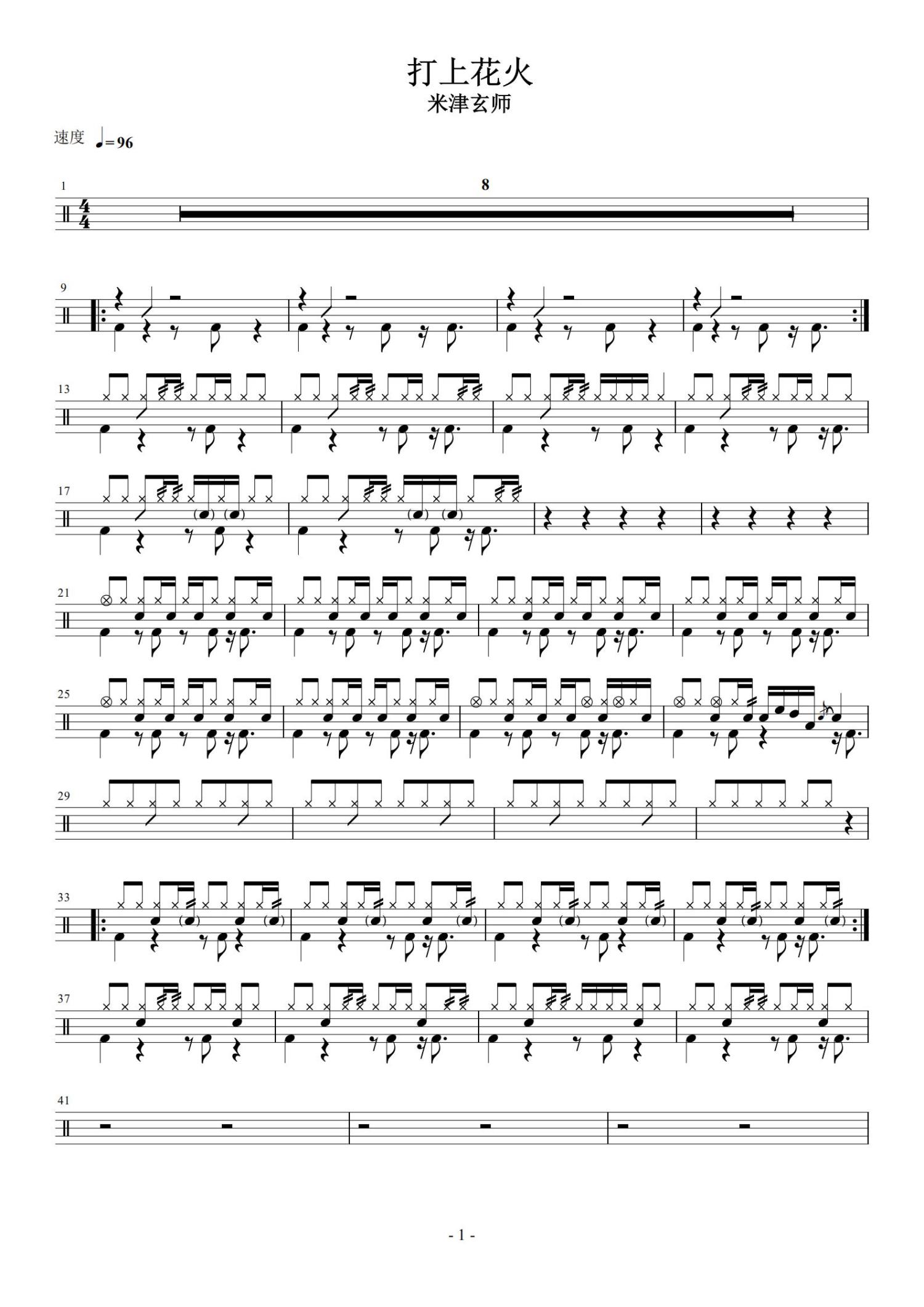 • 打上花火鼓谱 - DAOKO、米津玄师 - 架子鼓谱第1张