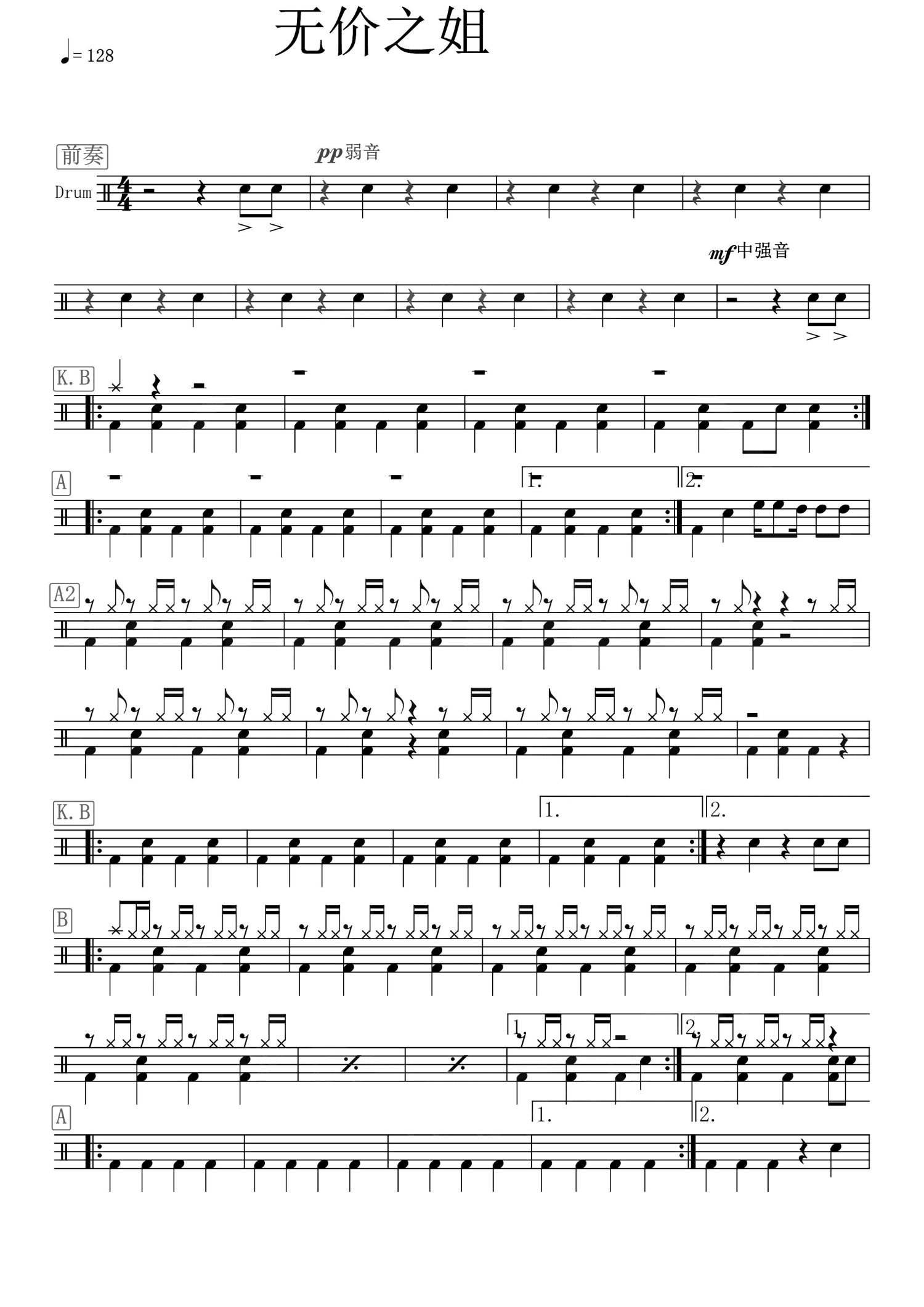 当前位置:琴谱网>架子鼓谱>无价之姐