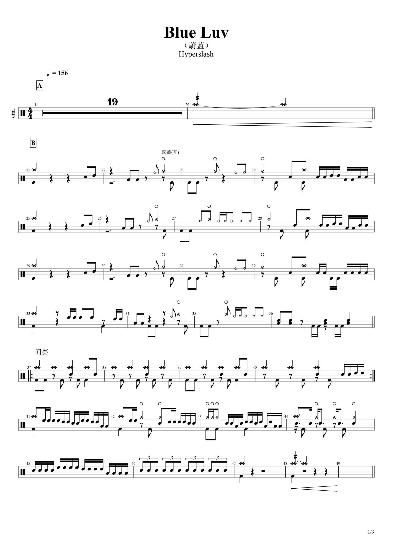 • 蔚蓝Blue Luv鼓谱 - HYPER SLASH(超级斩乐队) - 架子鼓谱第1张