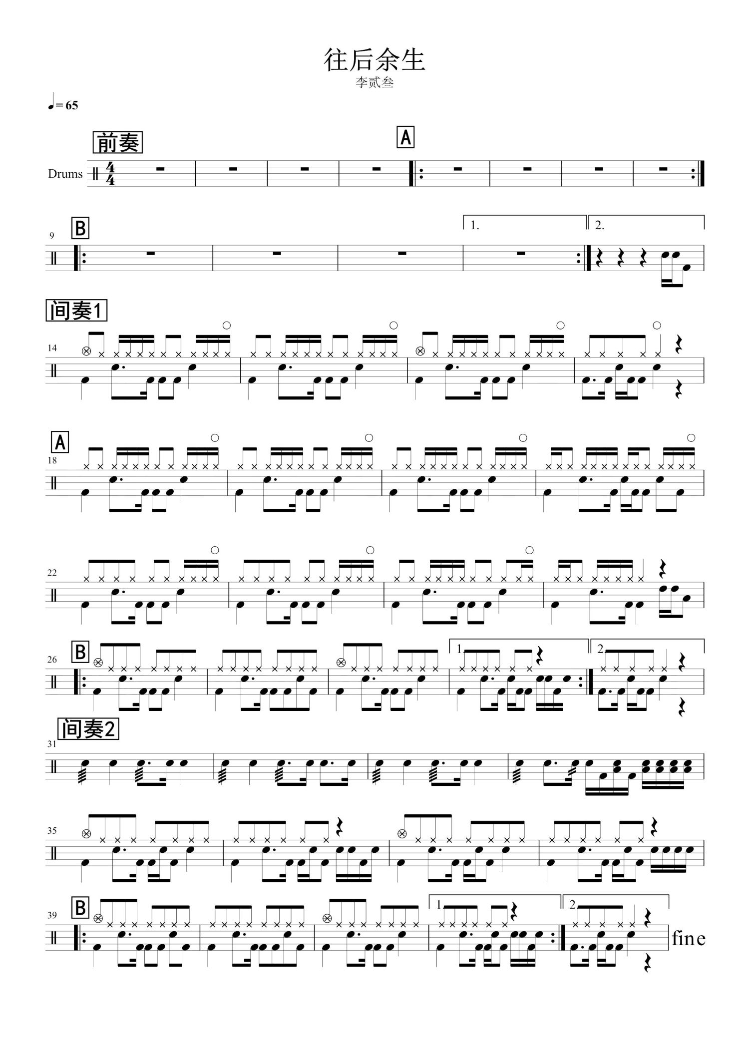 • 往后余生鼓谱 - 王贰浪 - 架子鼓谱第1张