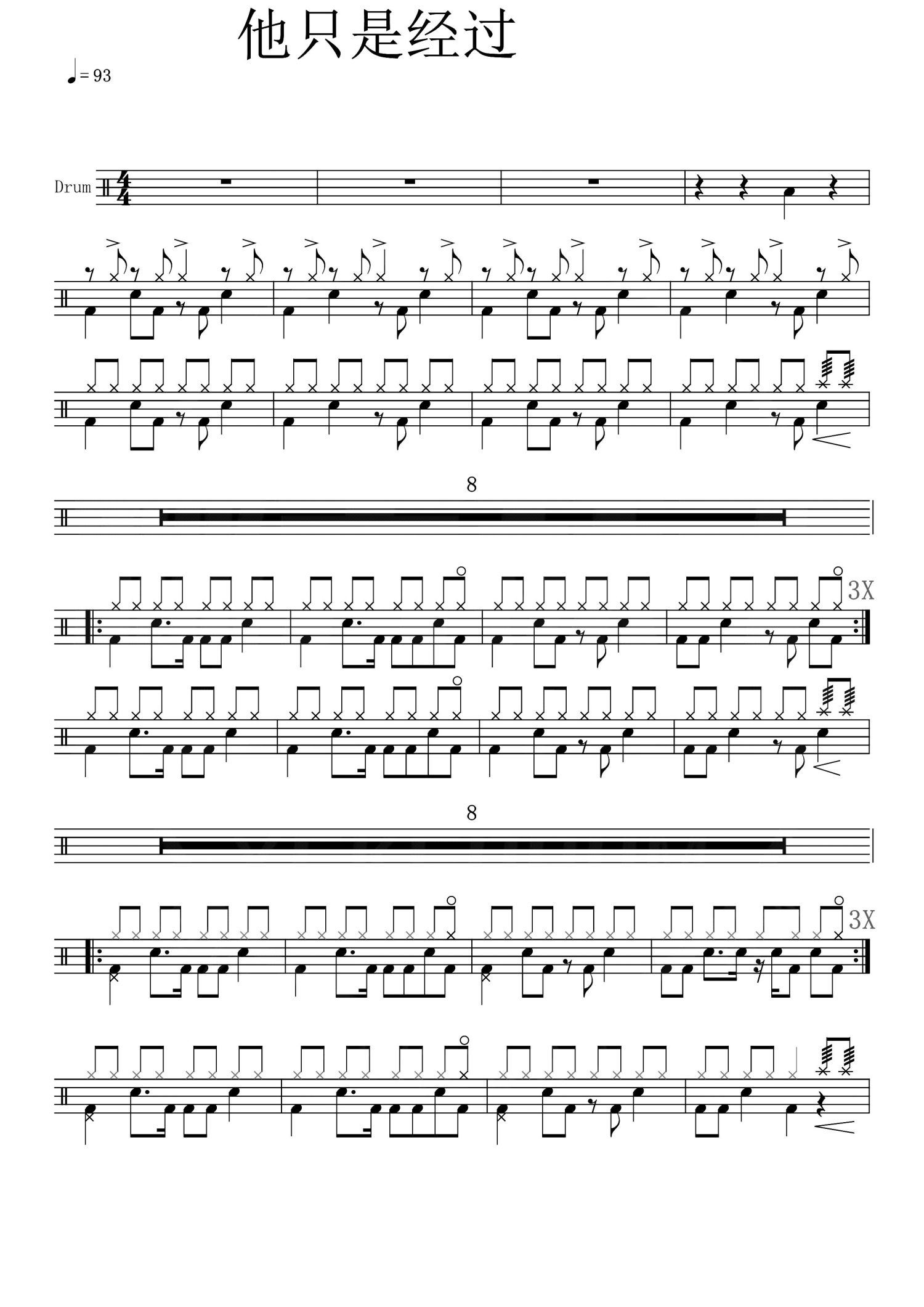 当前位置:琴谱网>架子鼓谱>他只是经过