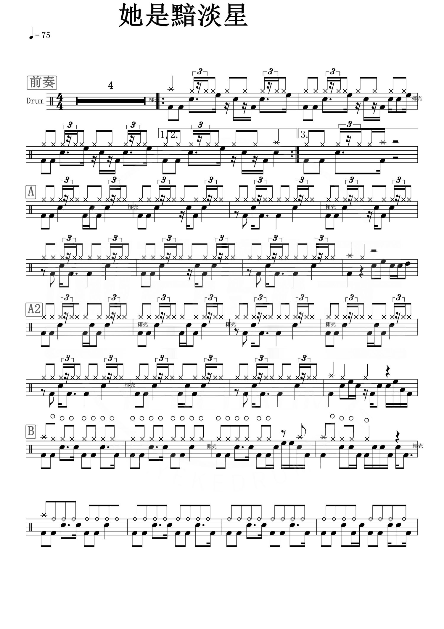 • 她是黯淡星鼓谱 - 木玛/Third Party - 架子鼓谱第1张