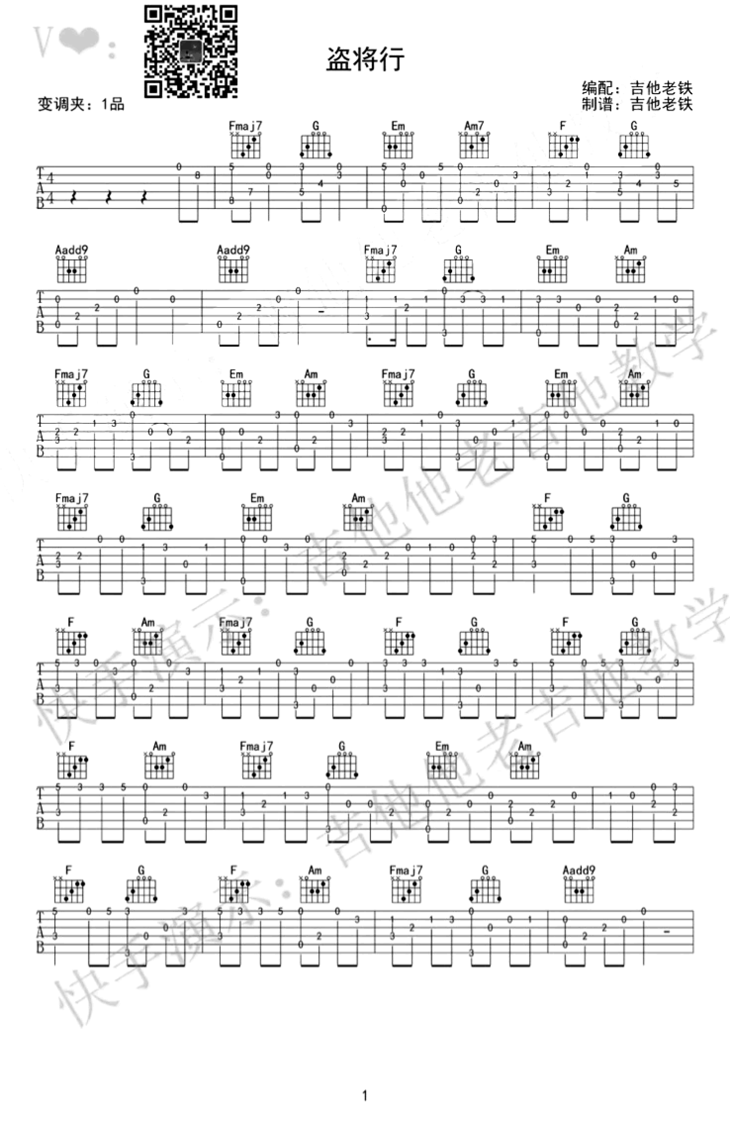 盗将行吉他谱 - 花粥 - 吉他独奏谱