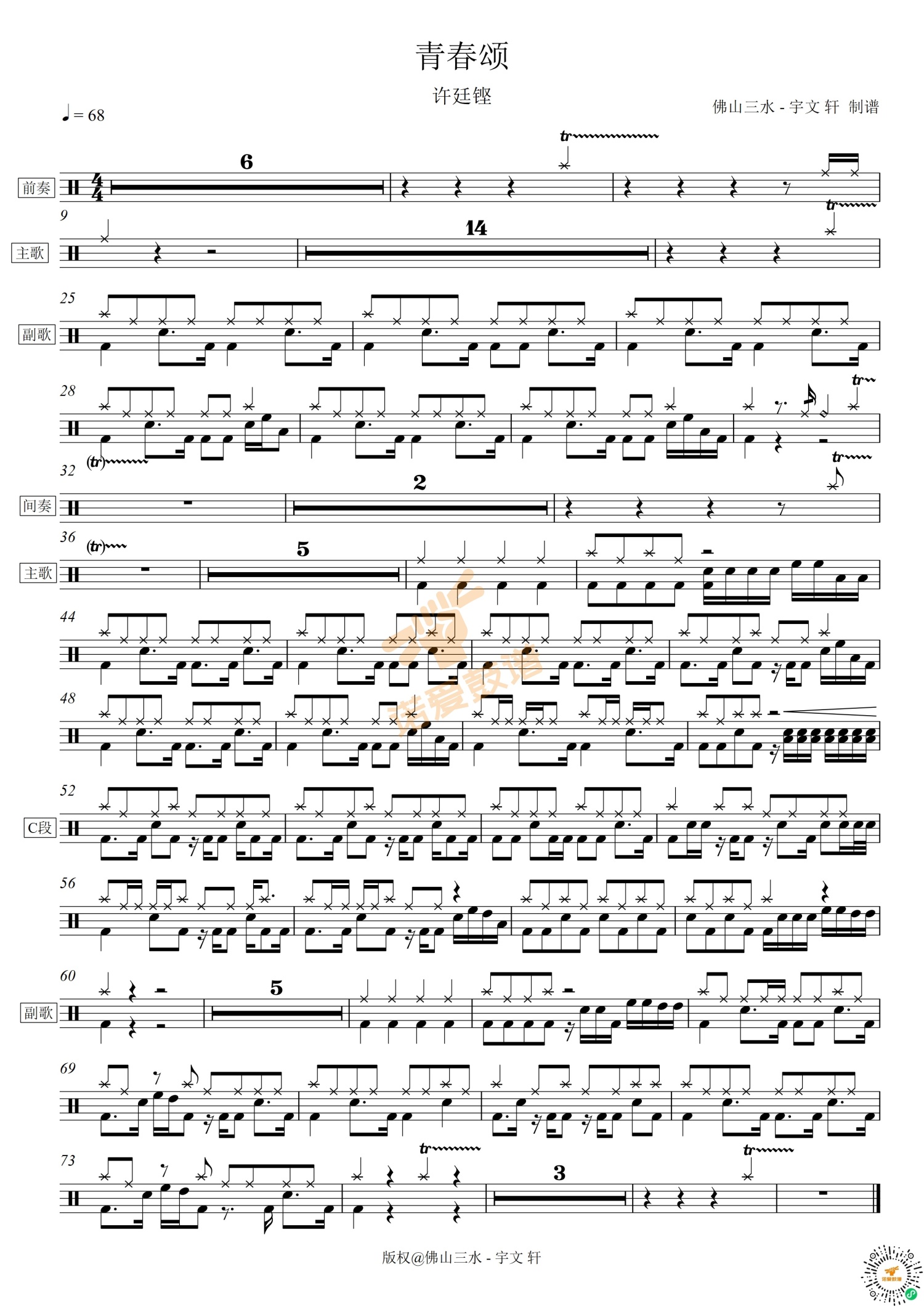 架子鼓谱原调来源:佛山三水 - 宇文轩411 浏览2022-05-10 17:09发布图谱共1页