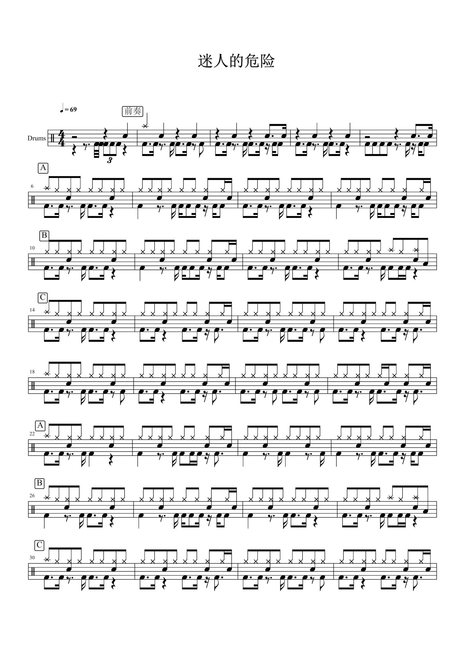 • 迷人的危险鼓谱 - 馅儿 - 架子鼓谱第1张