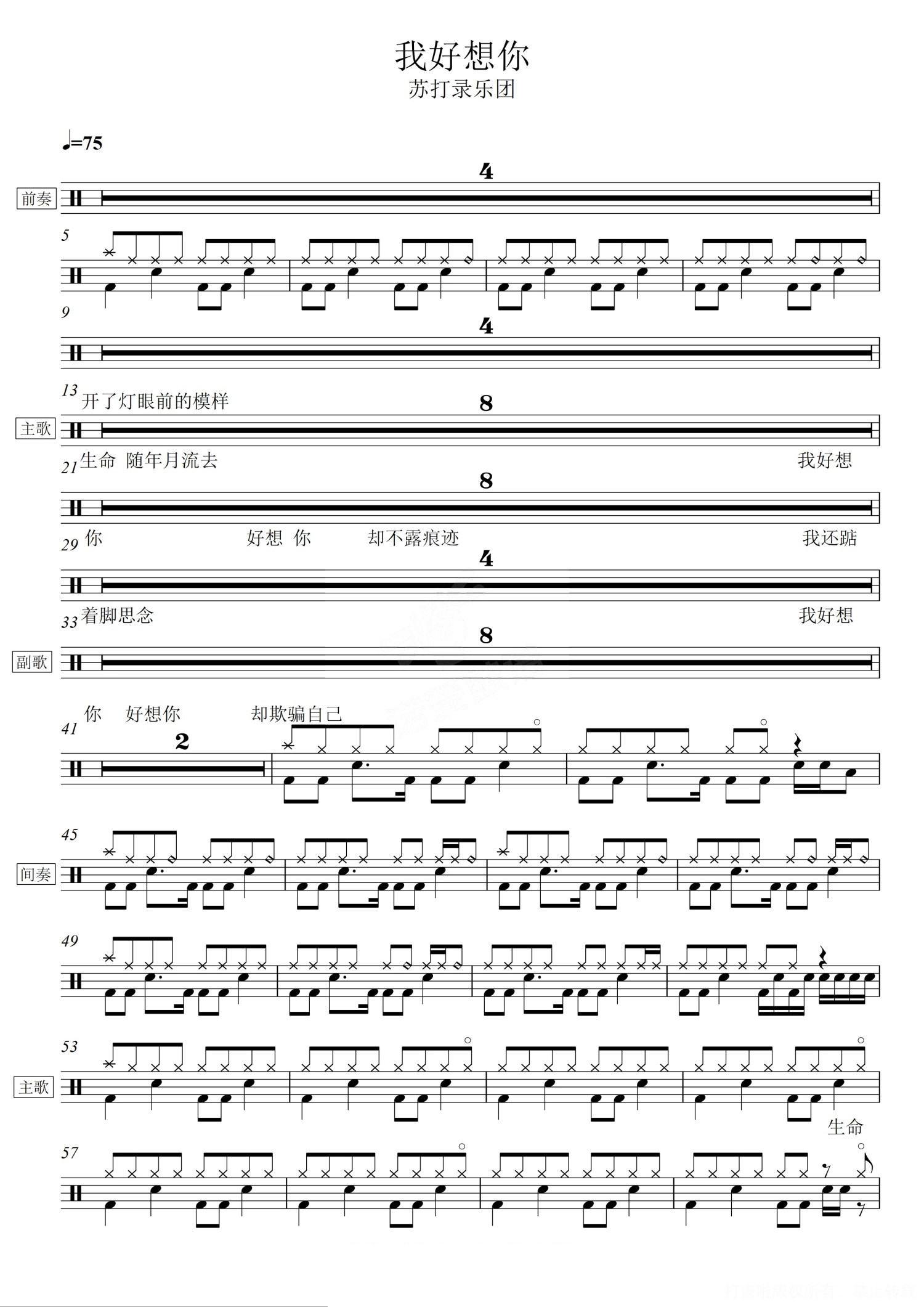 • 我好想你鼓谱 - 苏打绿乐团 - 架子鼓谱第1张