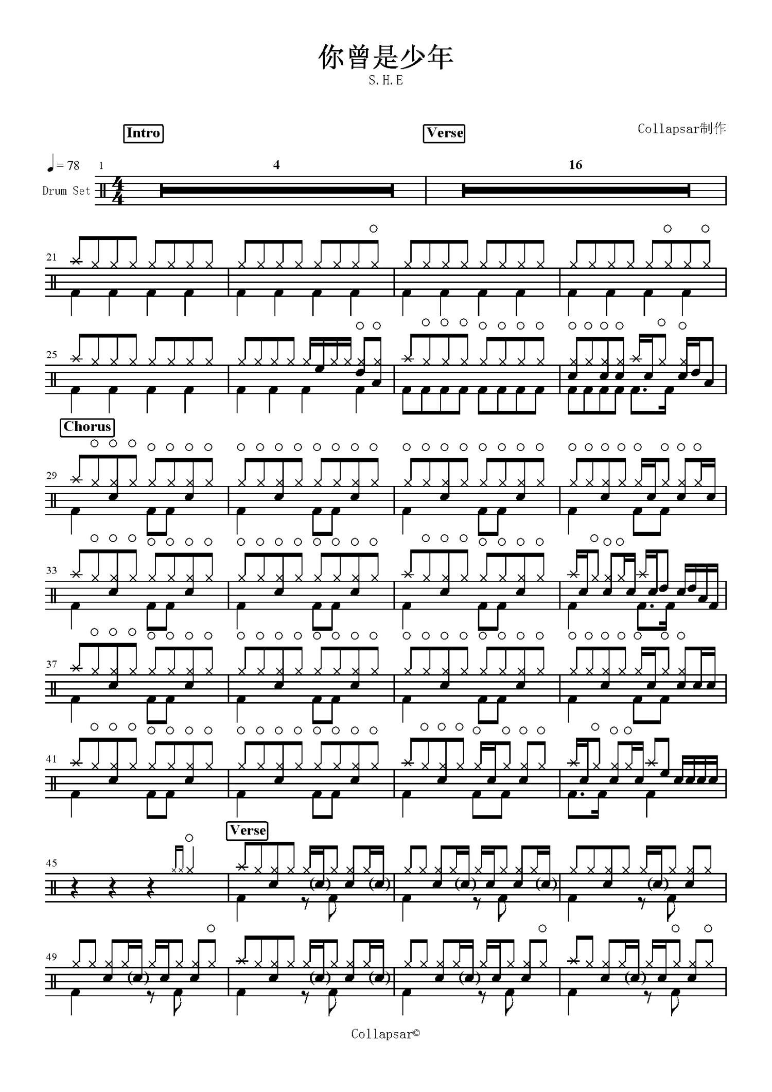 • 你曾是少年鼓谱 - S.H.E - 架子鼓谱第1张