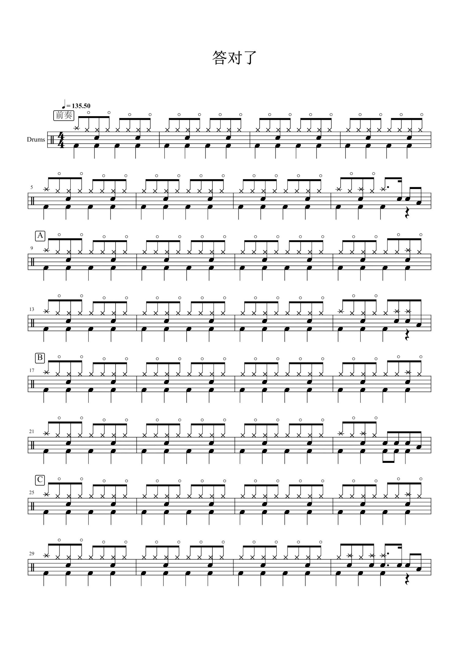 当前位置:琴谱网>架子鼓谱>答对了