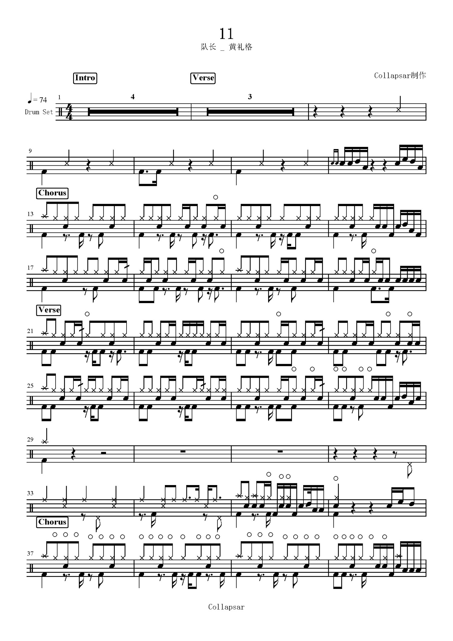 11鼓谱 - 队长/ 黄礼格 - 架子鼓谱