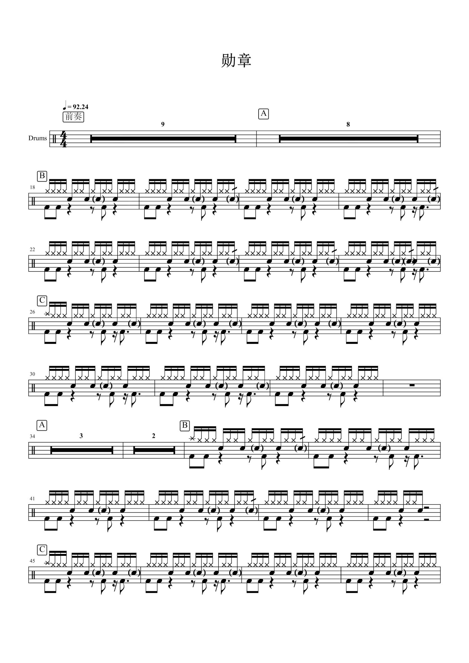 • 勋章鼓谱 - 鹿晗 - 架子鼓谱第1张