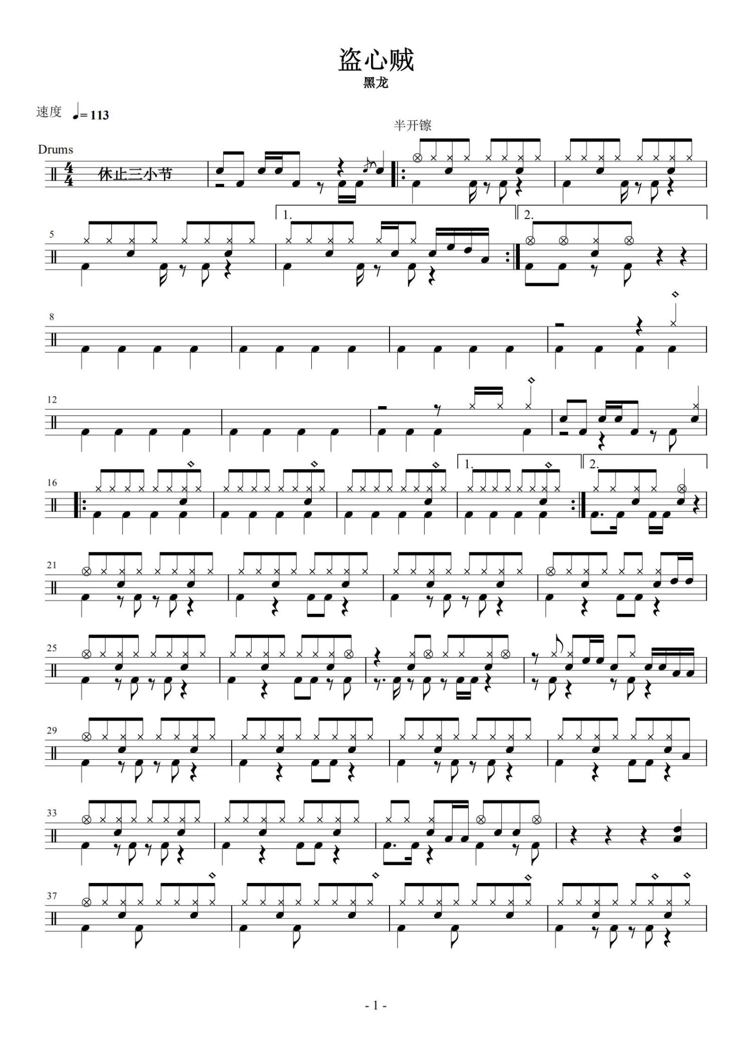 • 盗心贼鼓谱 - 黑龙 - 架子鼓谱第1张