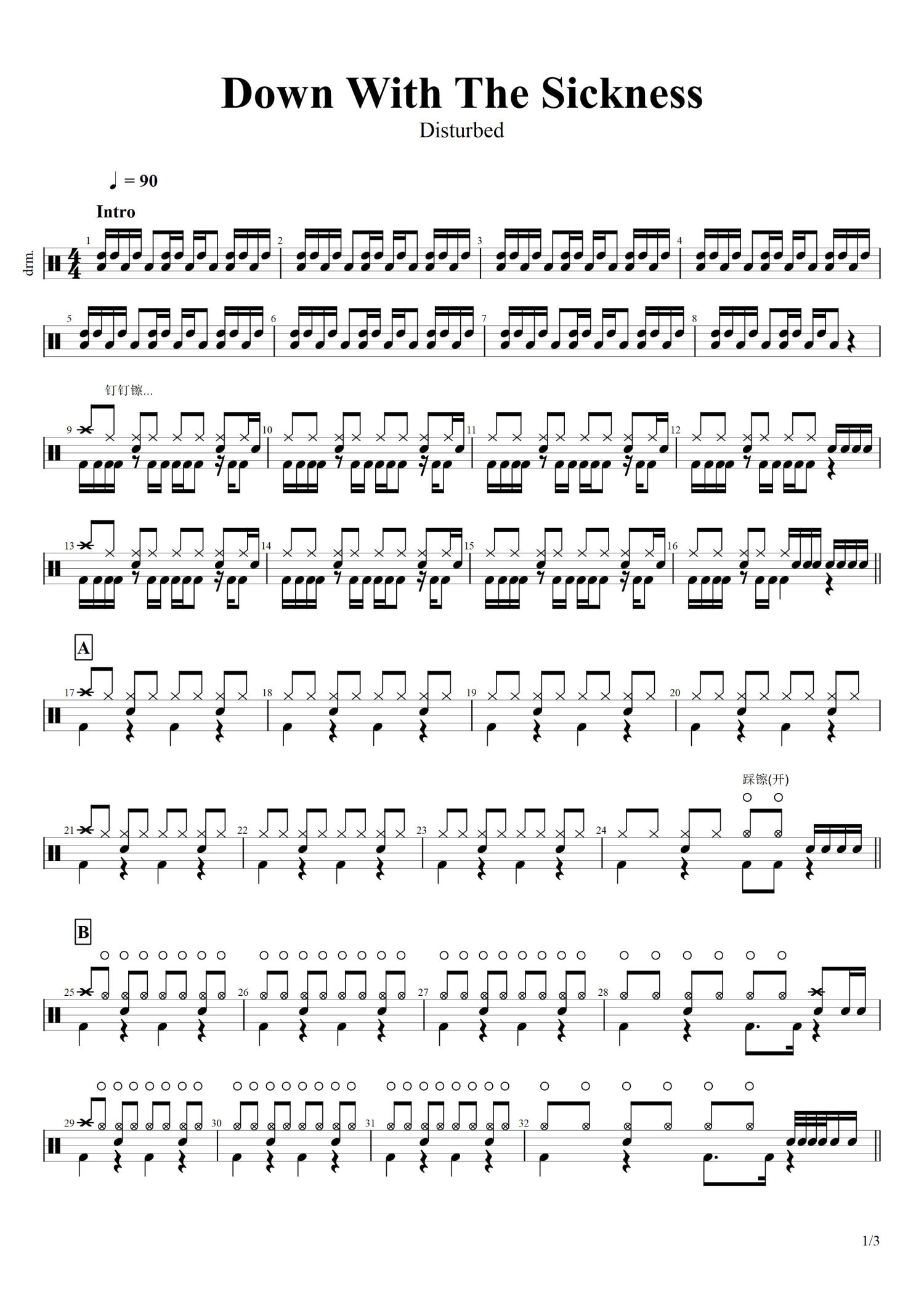 Down With The Sickness 怒金属鼓谱 - Disturbed - 架子鼓谱