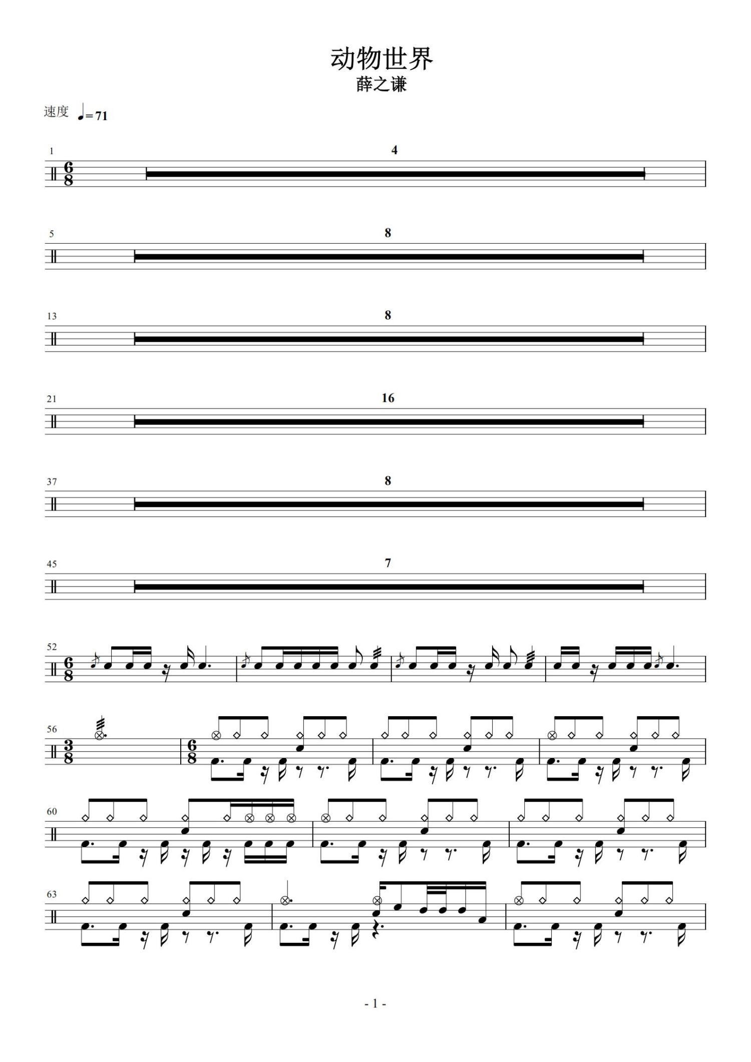 • 动物世界鼓谱 - 薛之谦 - 架子鼓谱第1张