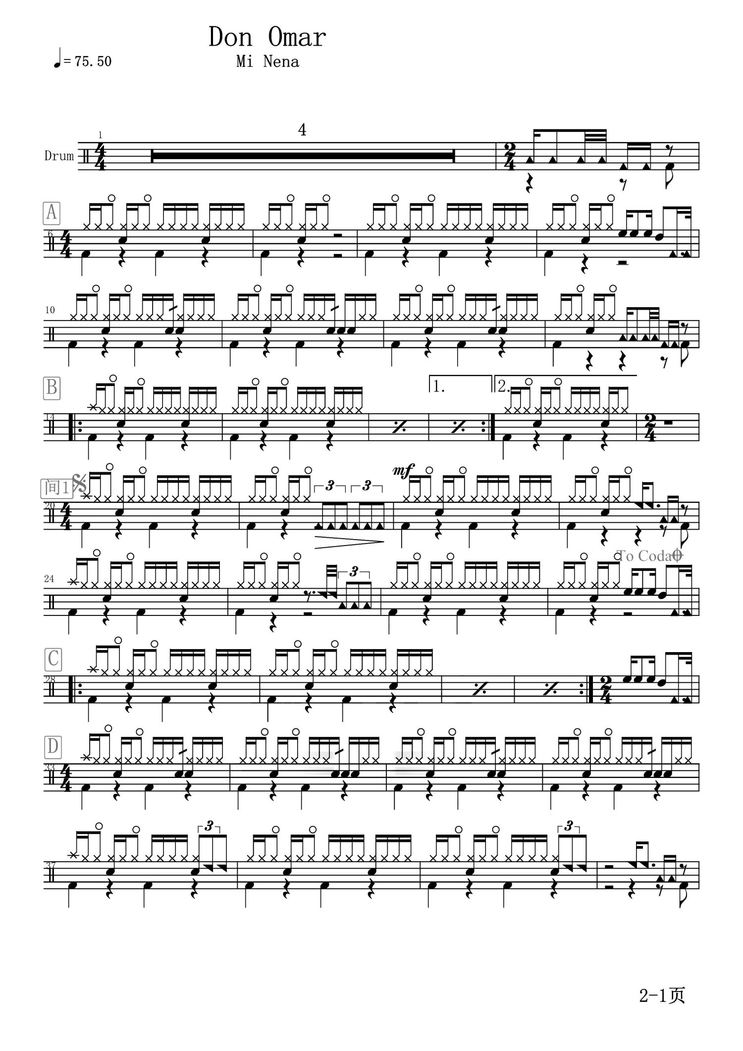• Mi Nena鼓谱 - Don Omar - 架子鼓谱第1张