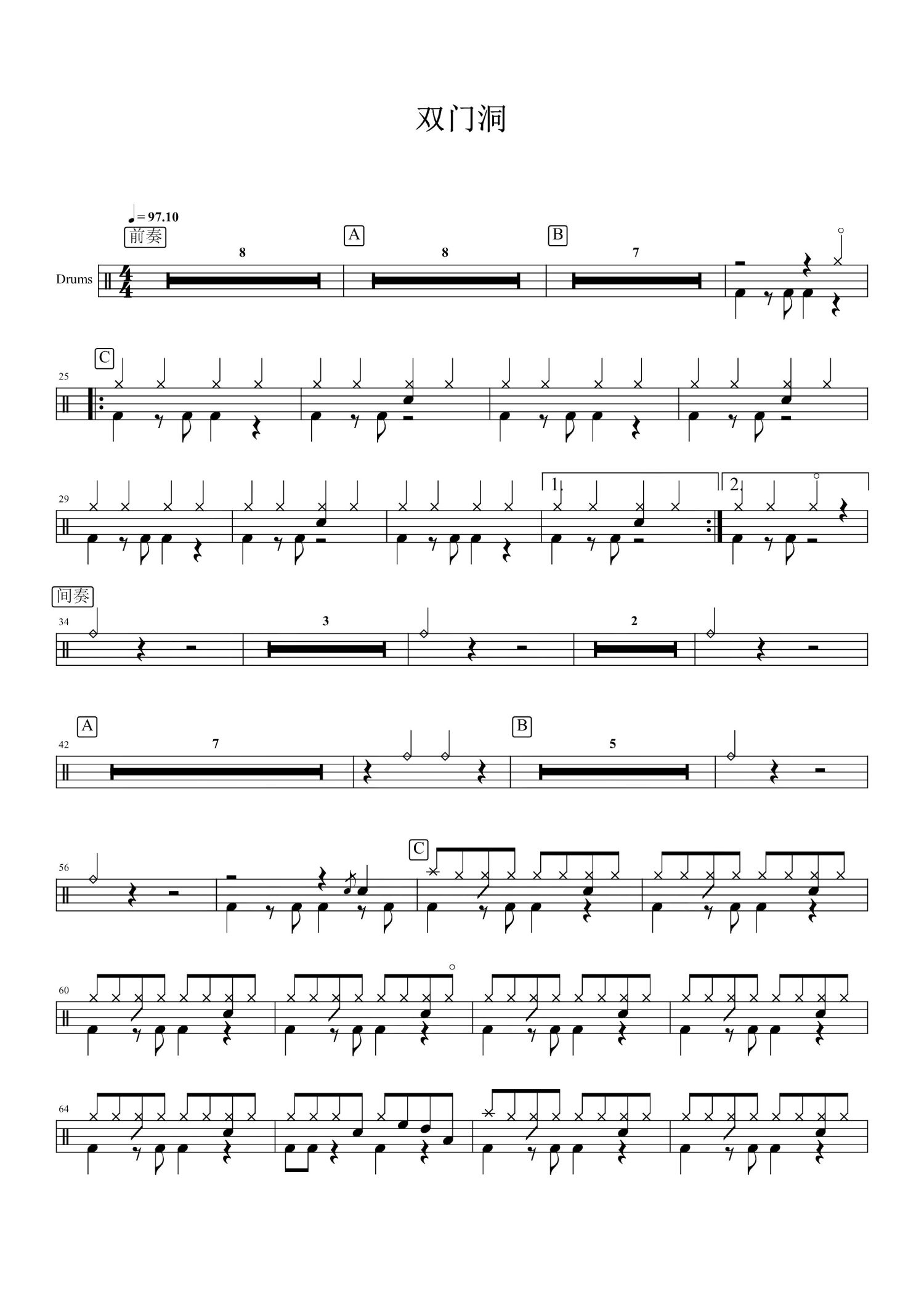 当前位置:琴谱网>架子鼓谱>双门洞