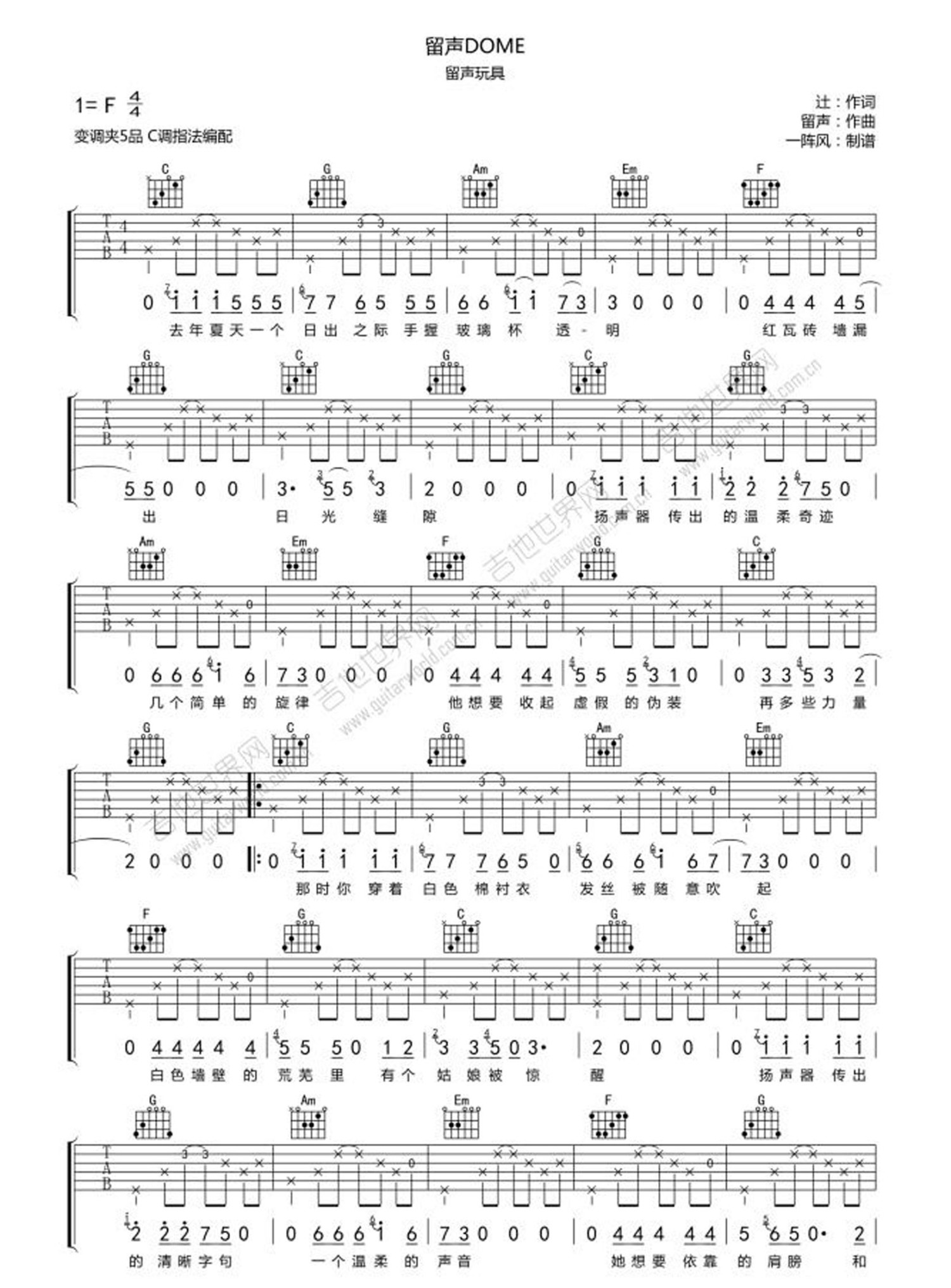 曲谱介绍: 留声玩具《留声DEMO》吉他谱_C调吉他弹唱谱