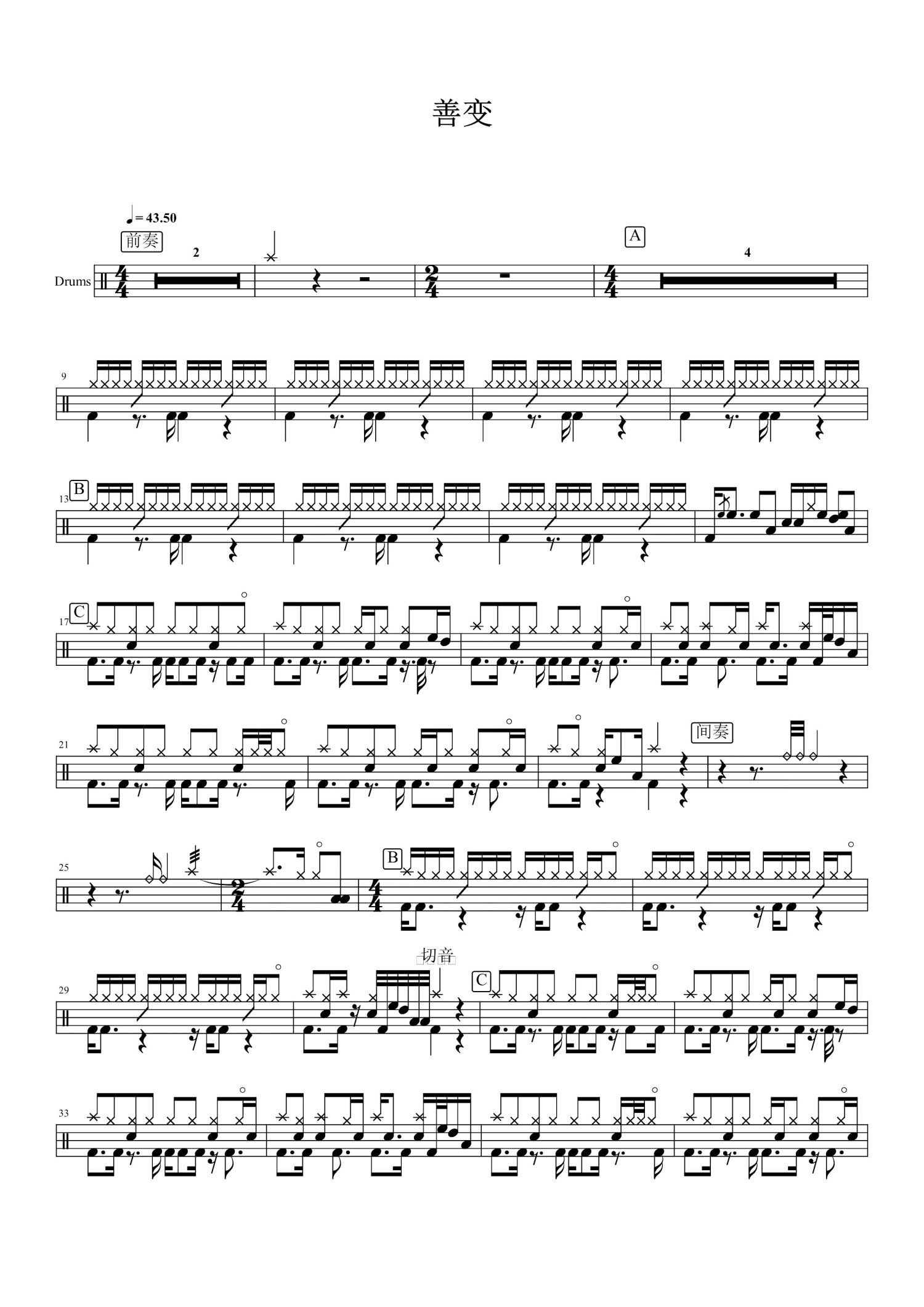 当前位置:琴谱网>架子鼓谱>善变