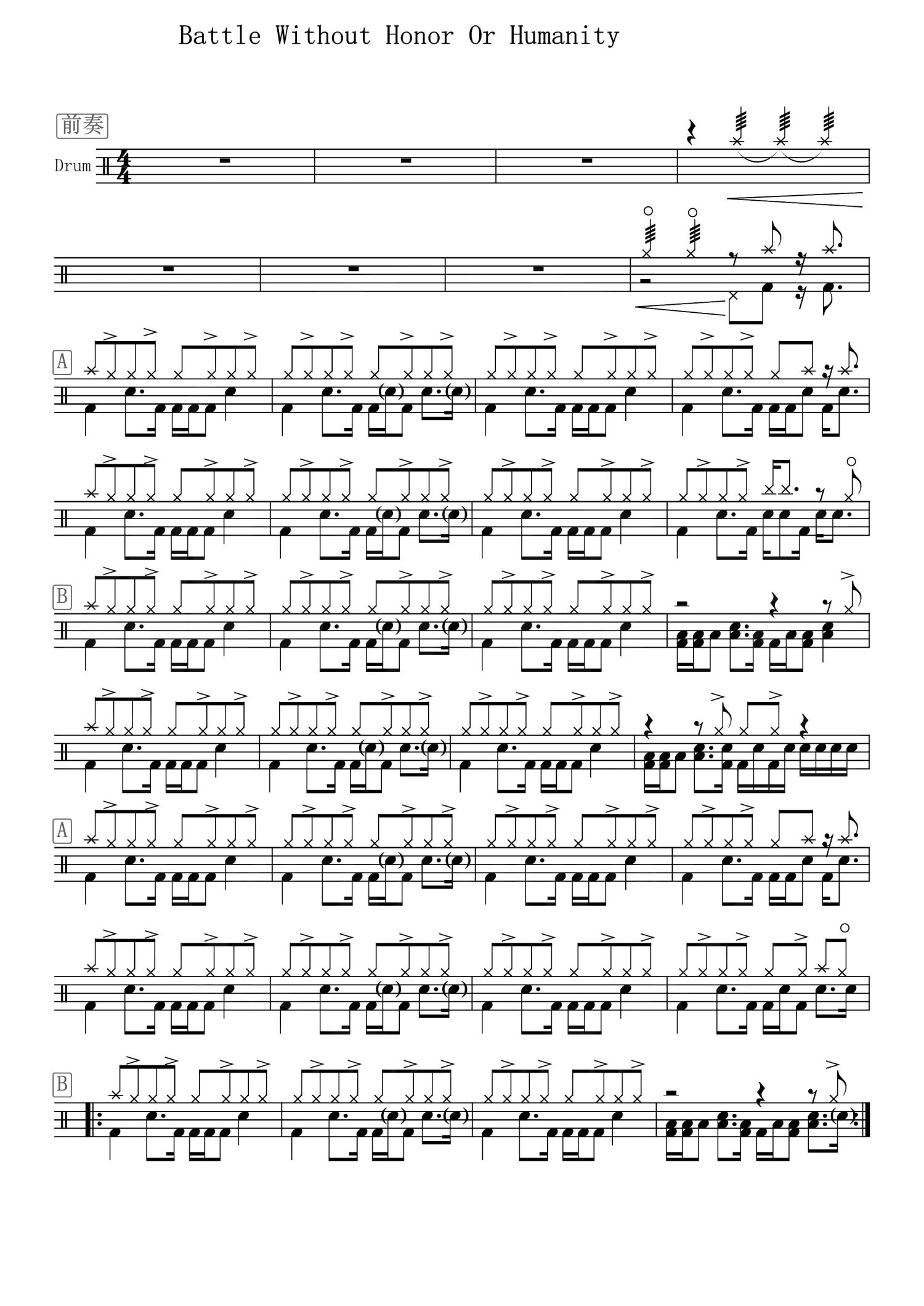 当前位置:琴谱网>架子鼓谱>Battle Without Honor Or Humanity