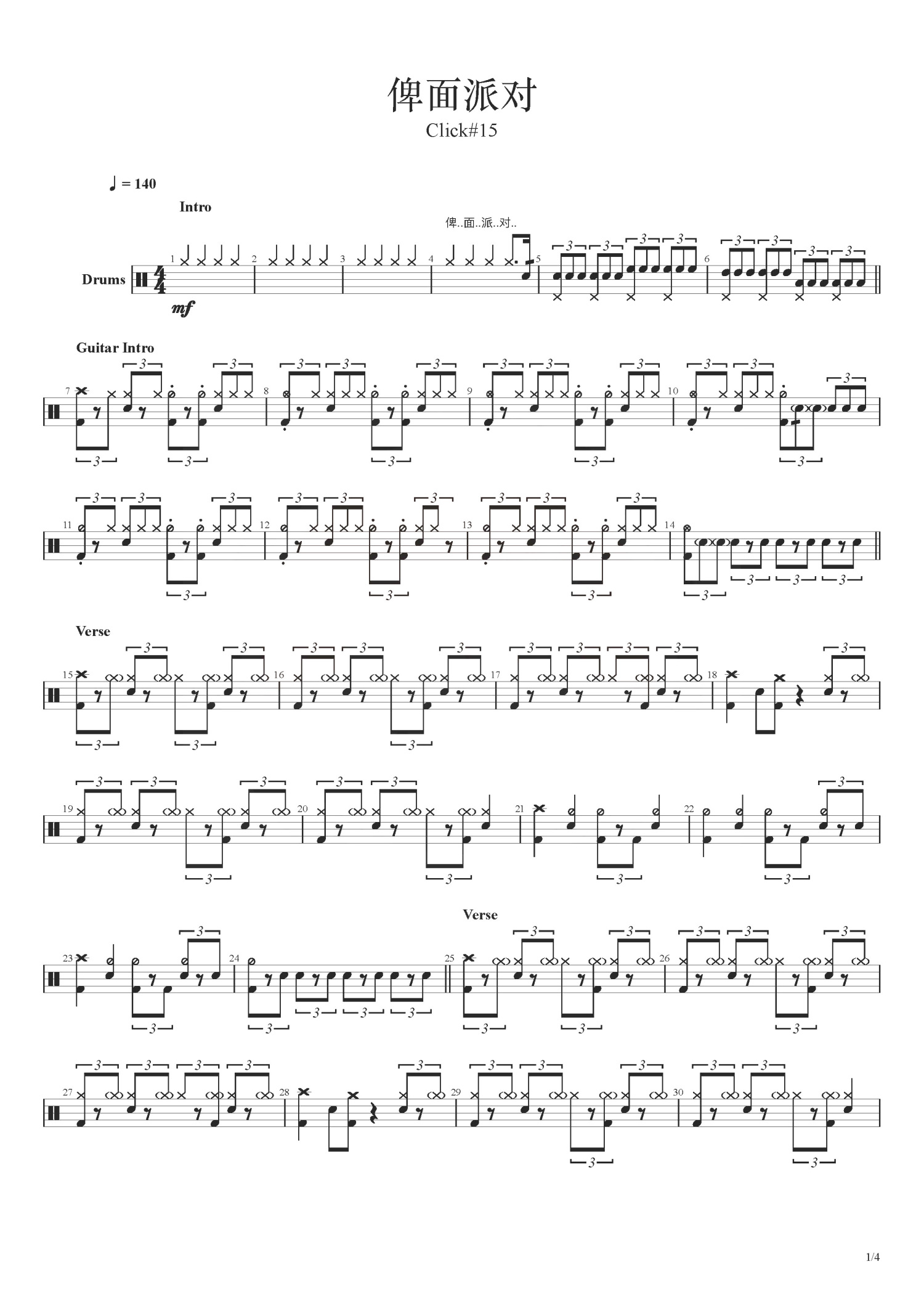 • 俾面派对鼓谱 - Click#15 - 架子鼓谱第1张