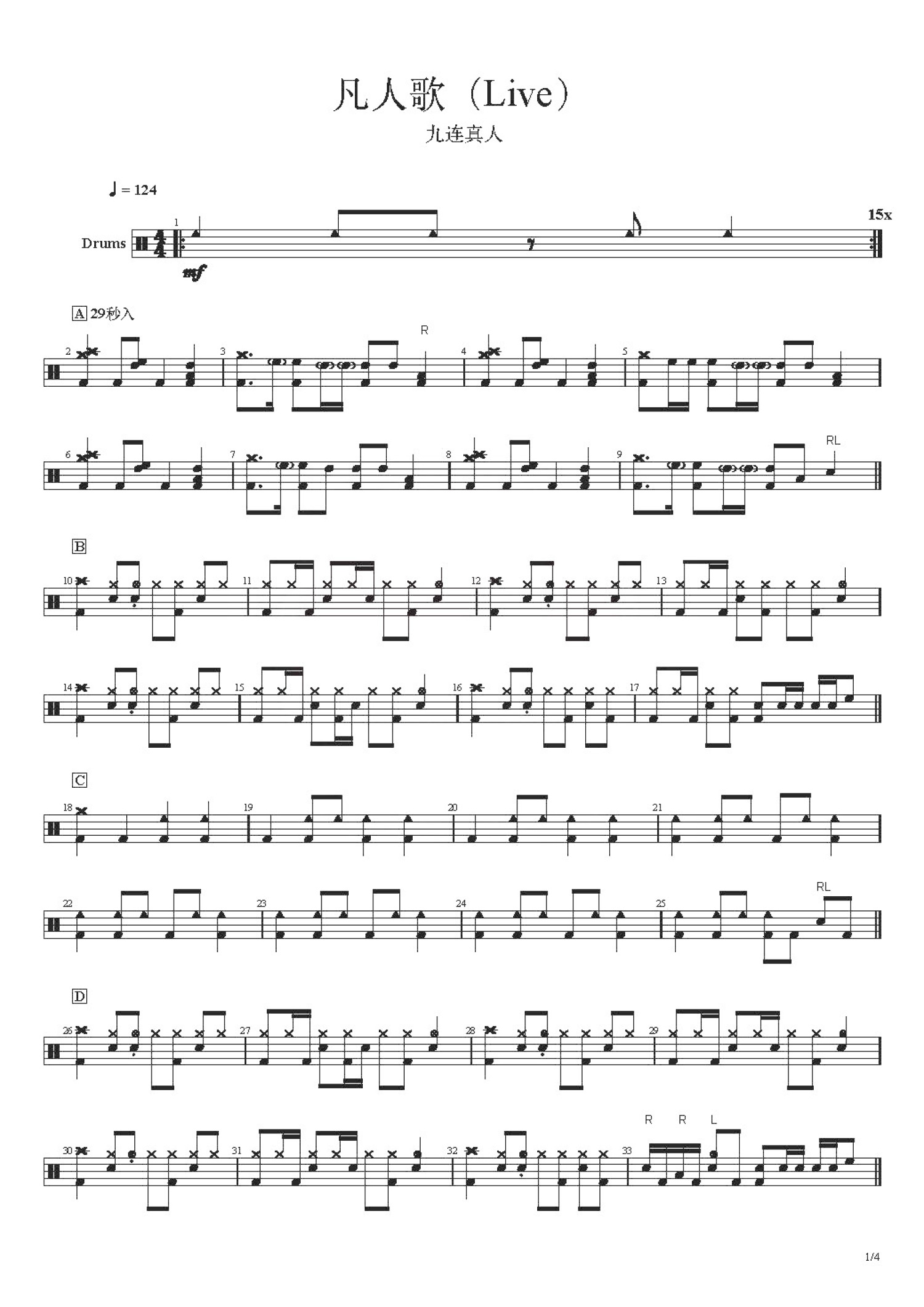 • 凡人歌鼓谱 - 九连真人 - 架子鼓谱 - live第1张