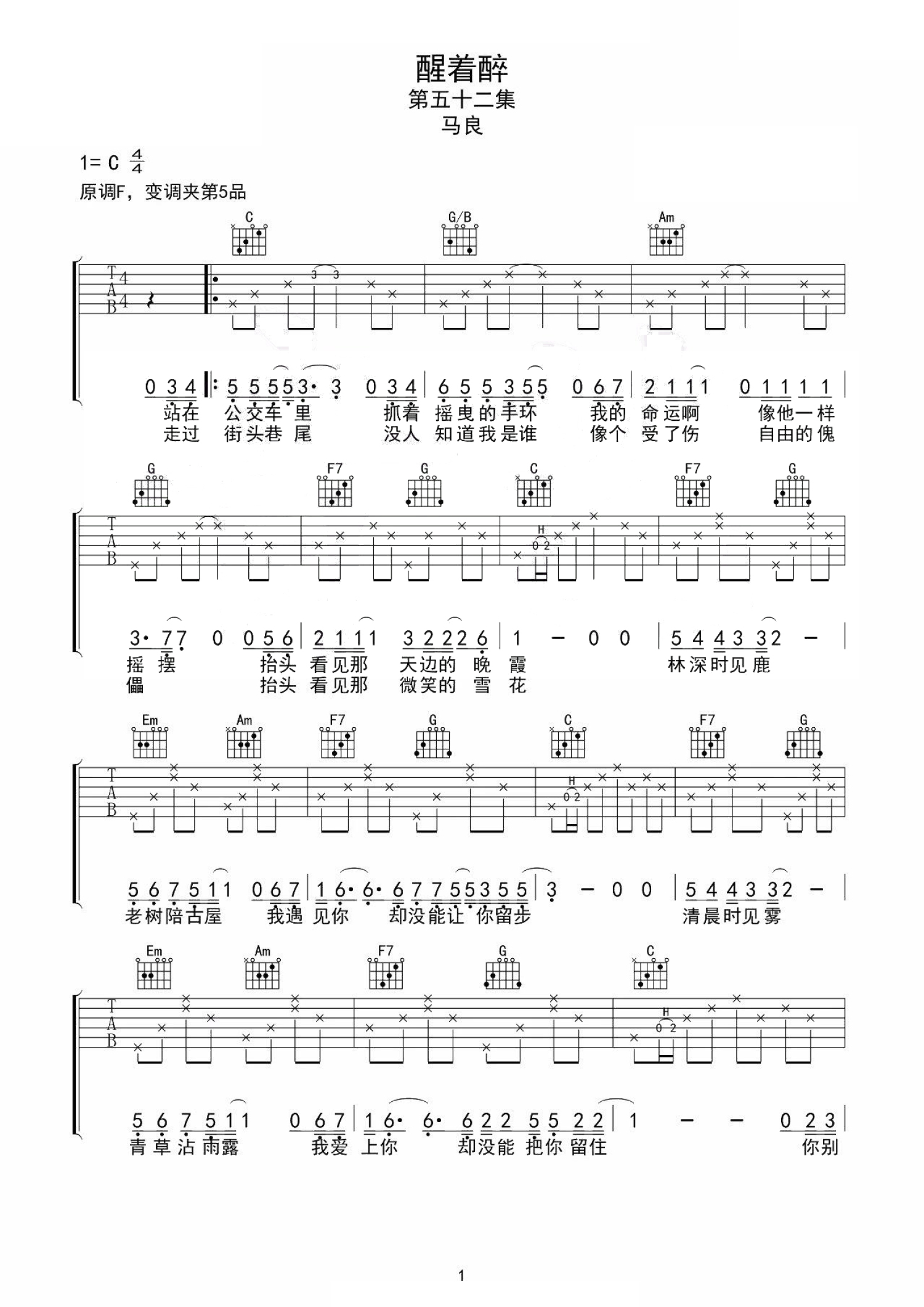 醒着醉吉他谱 - 马良 - C调吉他弹唱谱
