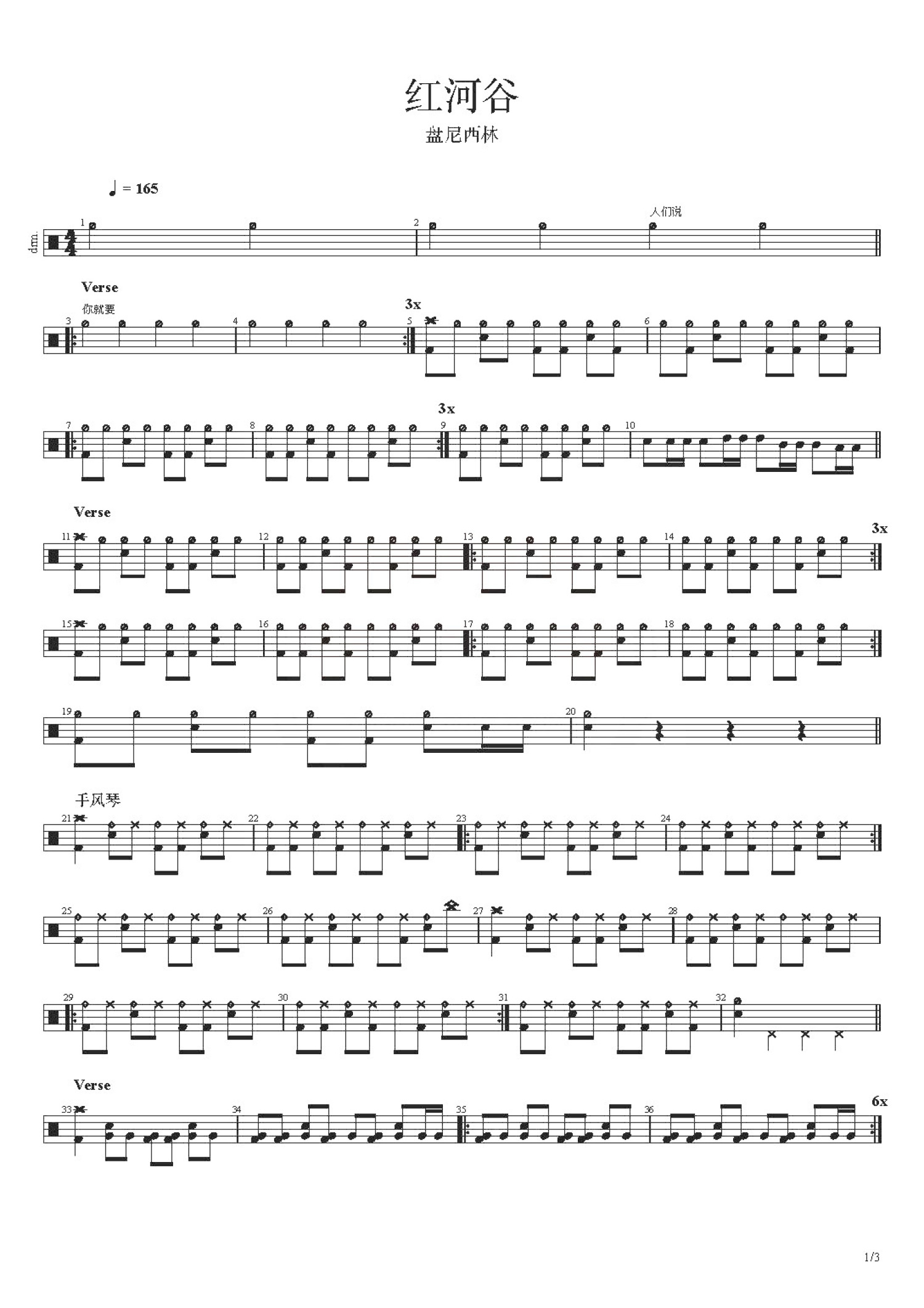• 红河谷鼓谱 - 盘尼西林 - 架子鼓谱第1张