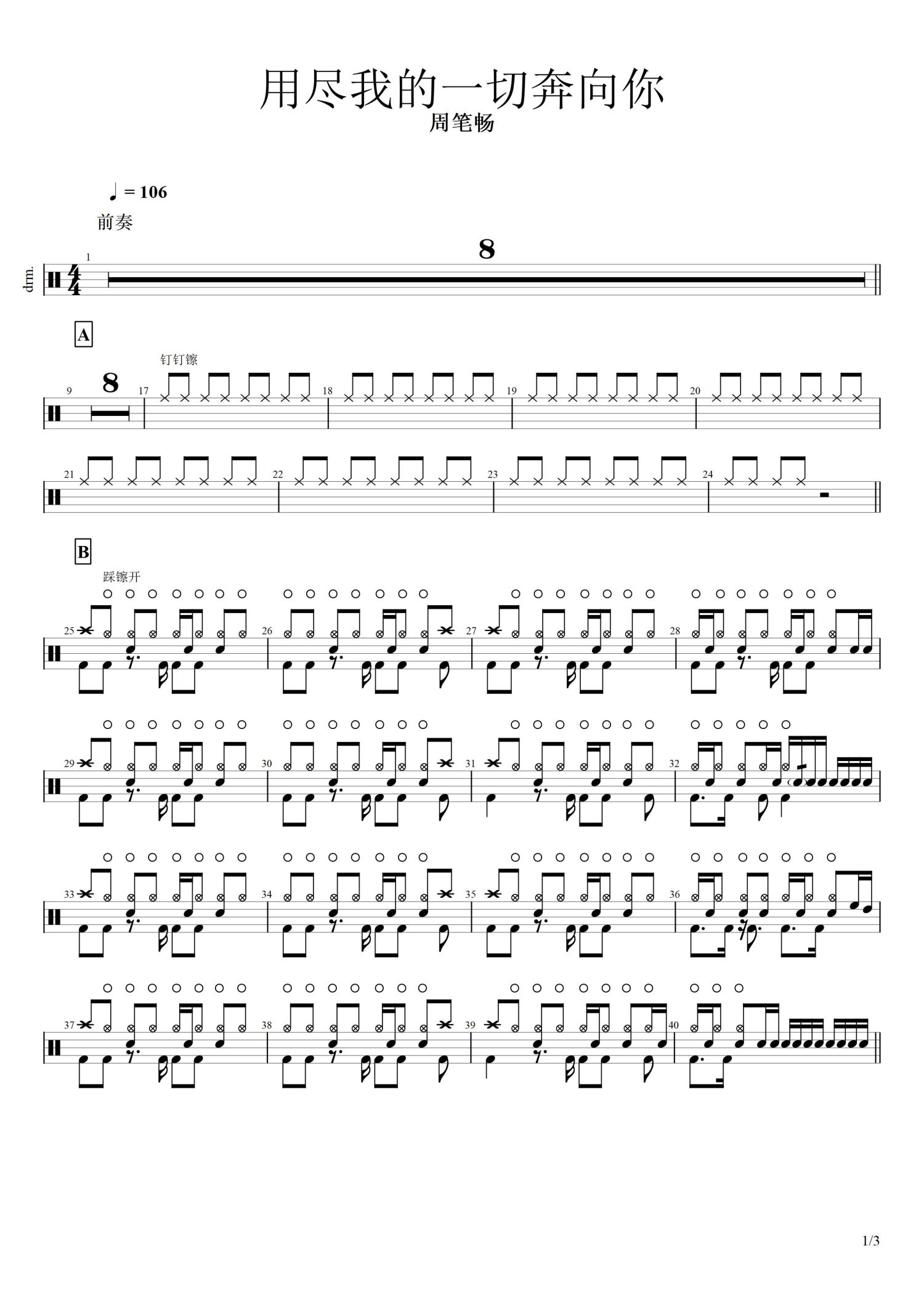 • 用尽我的一切奔向你鼓谱 - 周笔畅 - 架子鼓谱第1张