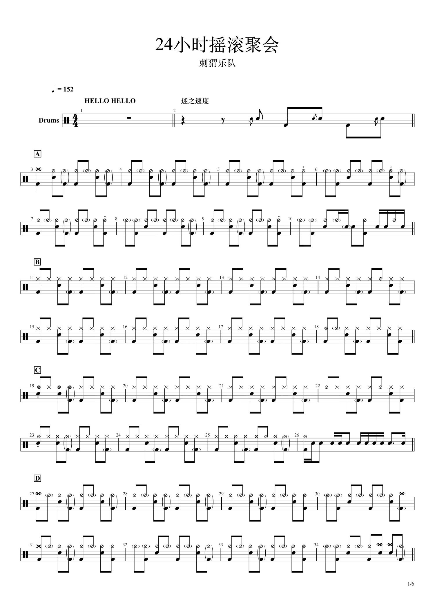 • 24小时摇滚聚会鼓谱 - 刺猬乐队 - 架子鼓谱第1张