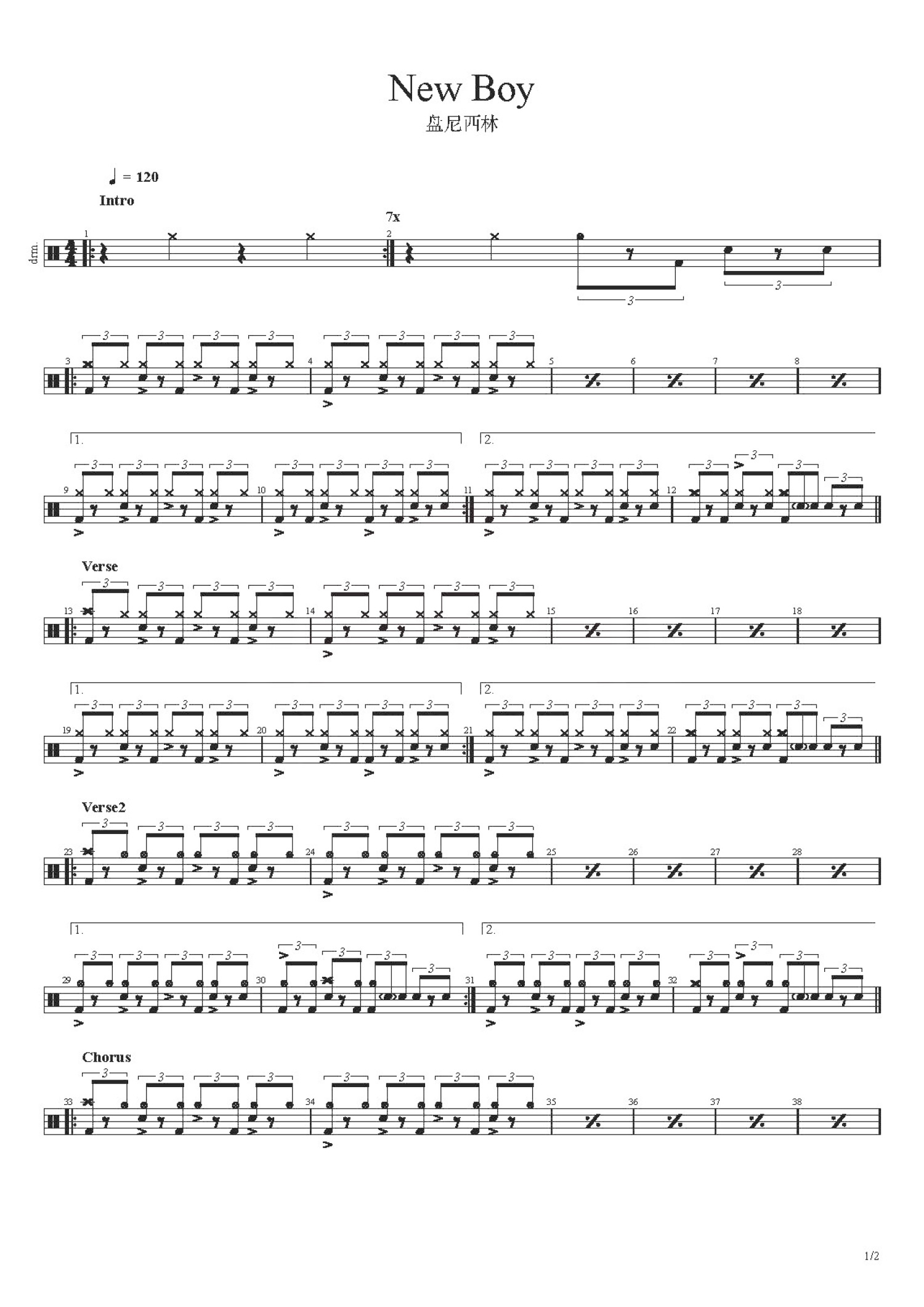 • New Boy鼓谱 - 盘尼西林乐队(Penicillin) - 架子鼓谱第1张
